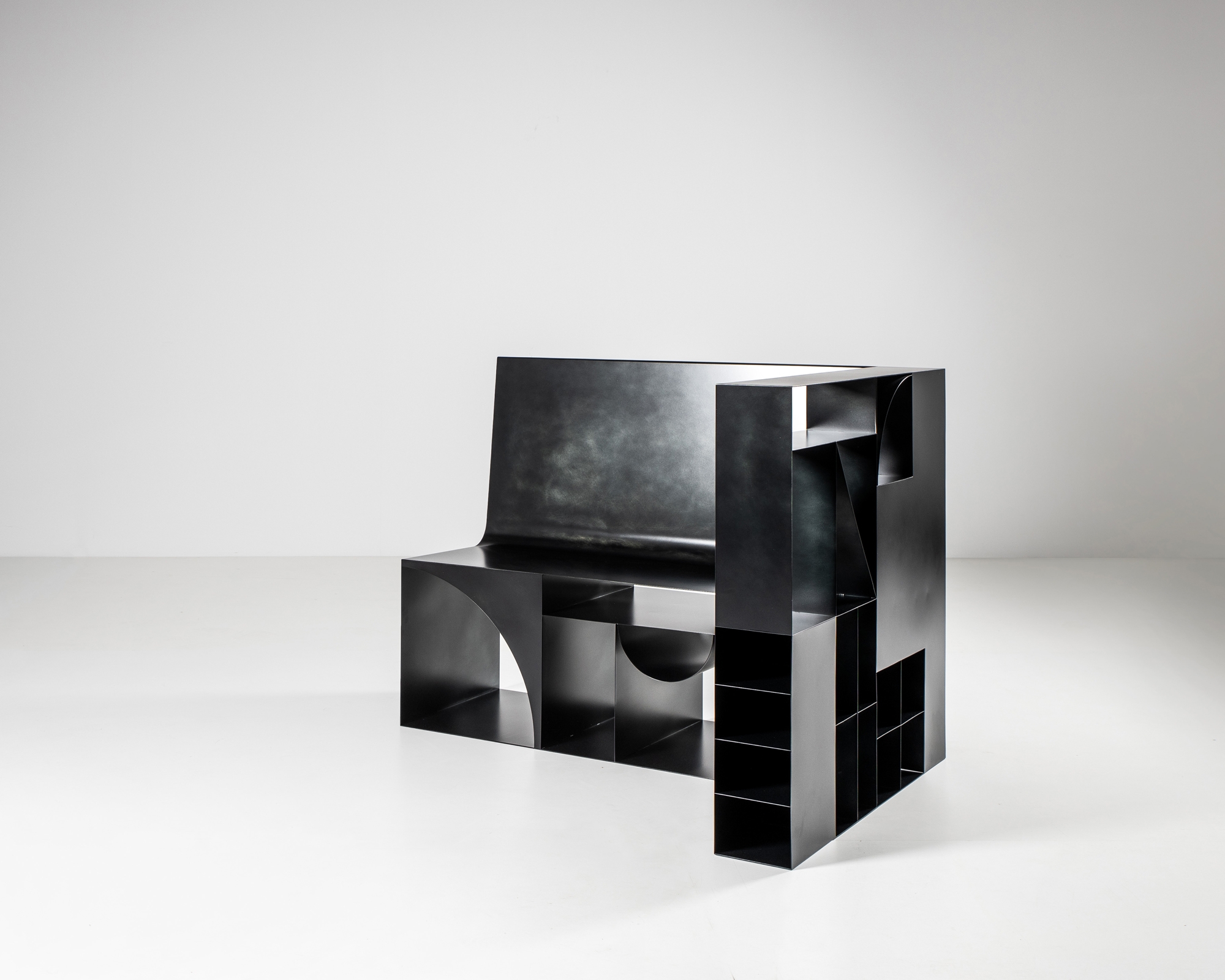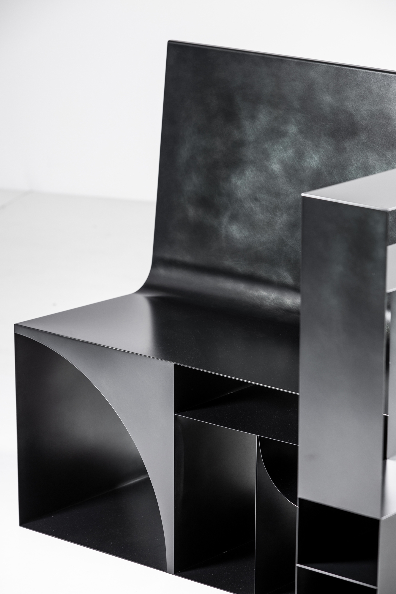“Labirinti” is a collection designed by Studio Zanellato/Bortotto, a one-off series of pieces dedicated to the world of collectors and presented at The Gallery Brussels. The result is not just a series of traditional cabinets and containers: Labirinti are narrative objects, able to transmit something even when empty. A delicate sign traces the outline of these objects and expresses an idea of collecting, rather than merely representing a functional use. The Labirinti collection consists of six pieces: seat, rug, shelf, coffee table, console and cabinet. All items are produced by De Castelli in thin metal sheets, bended, assembled and welded through skillful craftsmanship. Each surface has been treated differently obtaining unique and refined finishes.