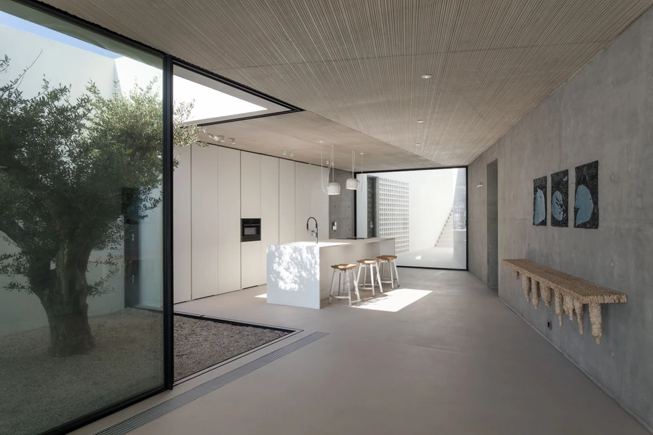 The intention to have the outdoor space emerges as the focal point of the building complex (an age-old Greek practice) is instantly legible. At level +0.00 (64m above sea level) all the spaces are developed around an atrium. In the center, an unyielding olive tree with roots deep in the Mediterranean landscape functions as an element of memory.
