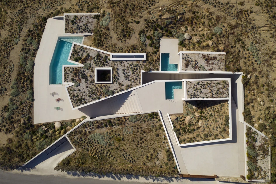 The Latypi project converses with the archetypical architectural legacy as well as the Cycladic terrain, situating itself as a contemporary intervention within the landscape. The concept has been inspired by the local sculptural tradition, which has produced timeless artworks throughout the centuries.