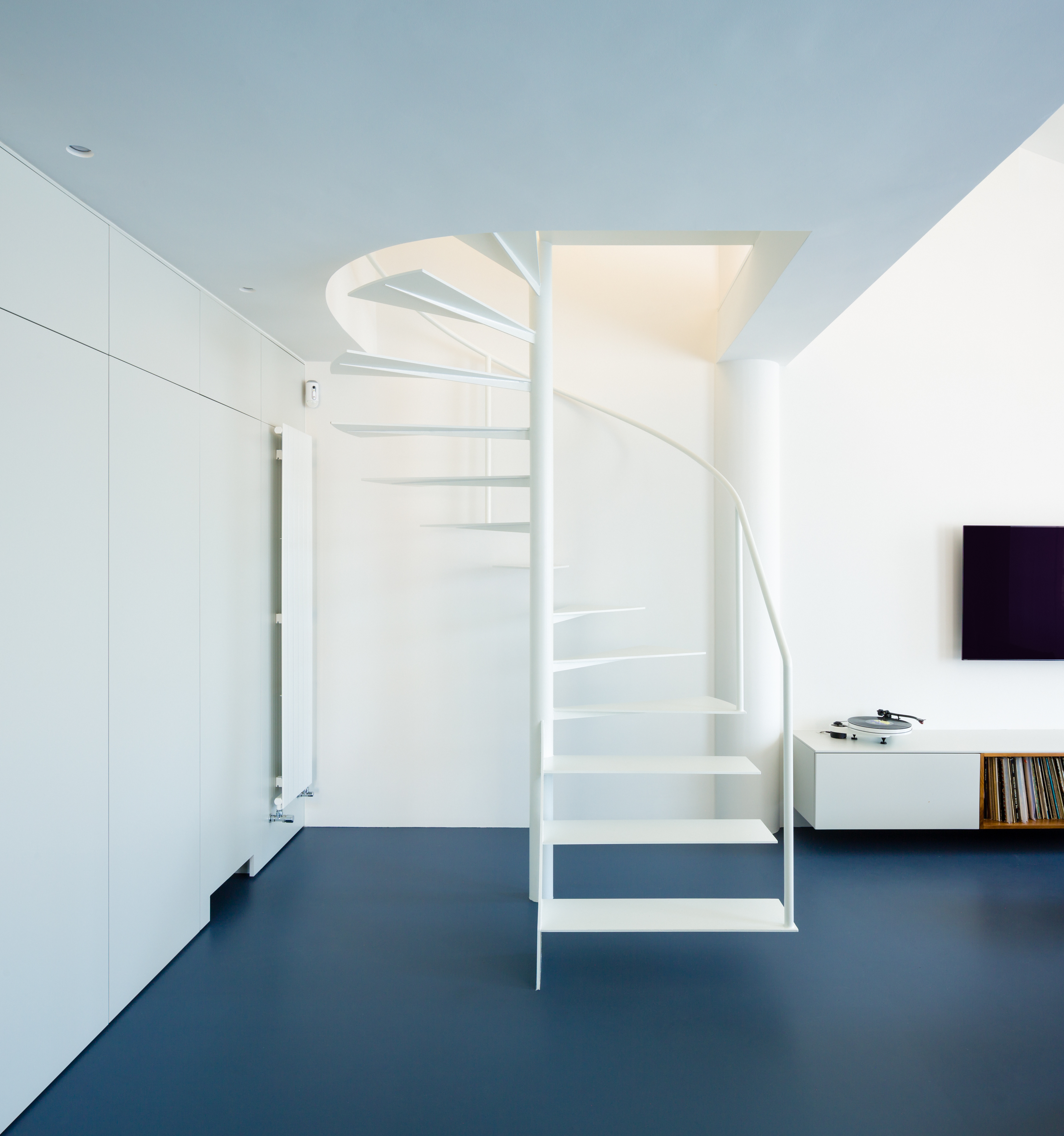 Loft 01 was designed for a single professional. Conceived as an open and flexible concept, the loft is divided in two different storeys where natural light interconnects the multiple spaces.