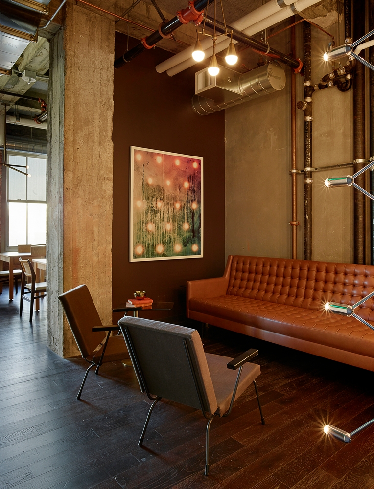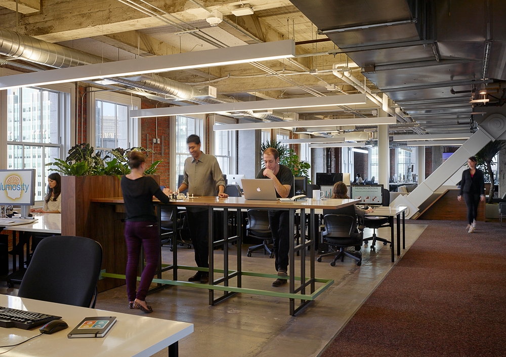 In 2014, Lumosity moved into a 38,000 square foot office in a newly-redone Art Deco building in downtown San Francisco. Inspired by the architecture and by Lumosity’s mission, our design for their offices incorporates sophisticated elements, antique finds, bold contemporary furniture, and brain-game fun. Mullioned glass, distinctive lighting, and contemporary art are key features of the space. To echo the core design elements and to create workspaces tailor-made for Lumosity employees, we custom designed much of the furniture for the firm.