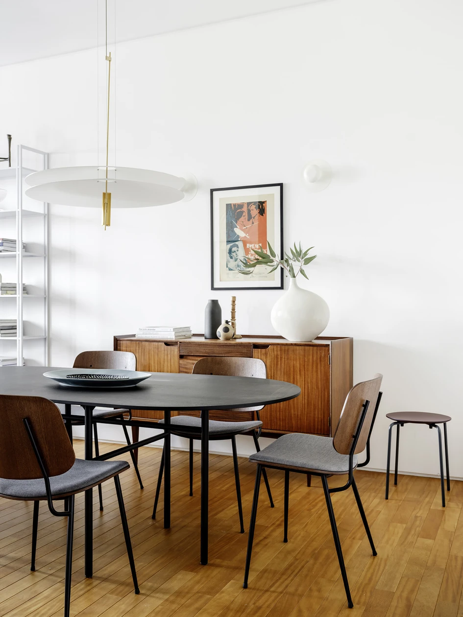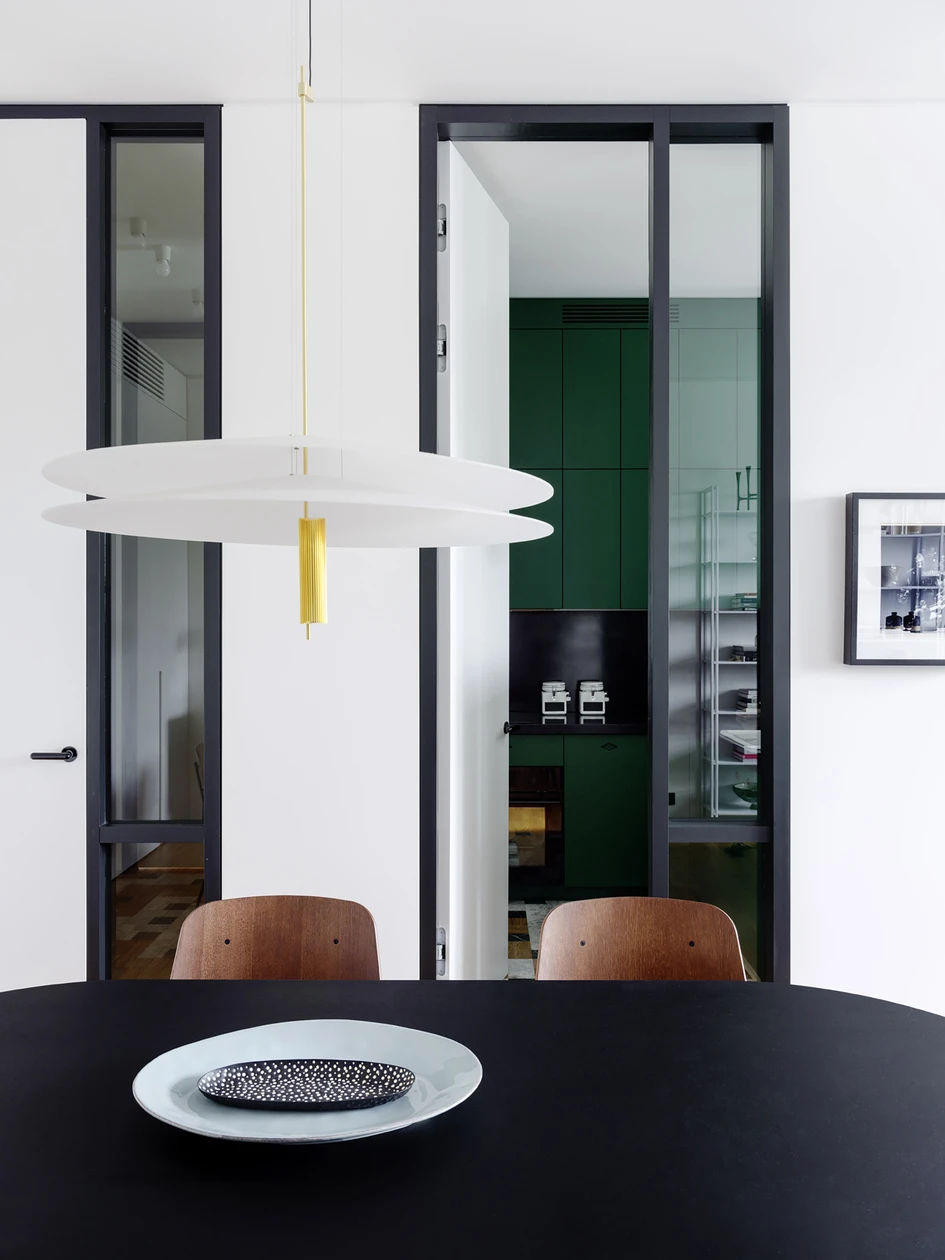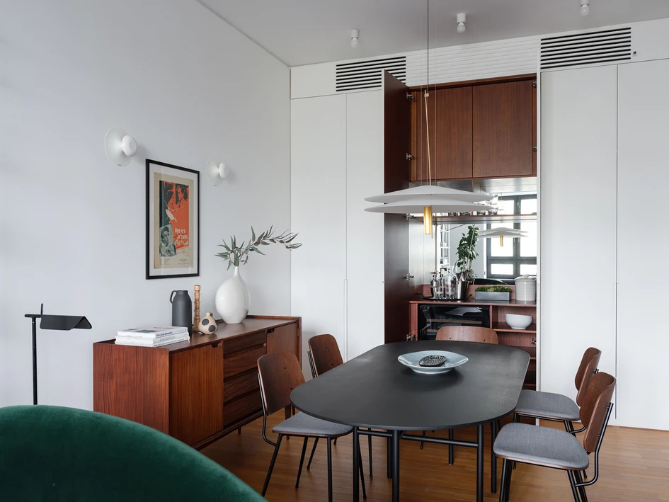 In juxtaposition to the architectural design, we fitted out the flat with furniture and lighting pieces that are very different in texture, materials and styles. It is this juxtaposition that lends the projects its unique and recognizable flavour and reflects the character of its owner.