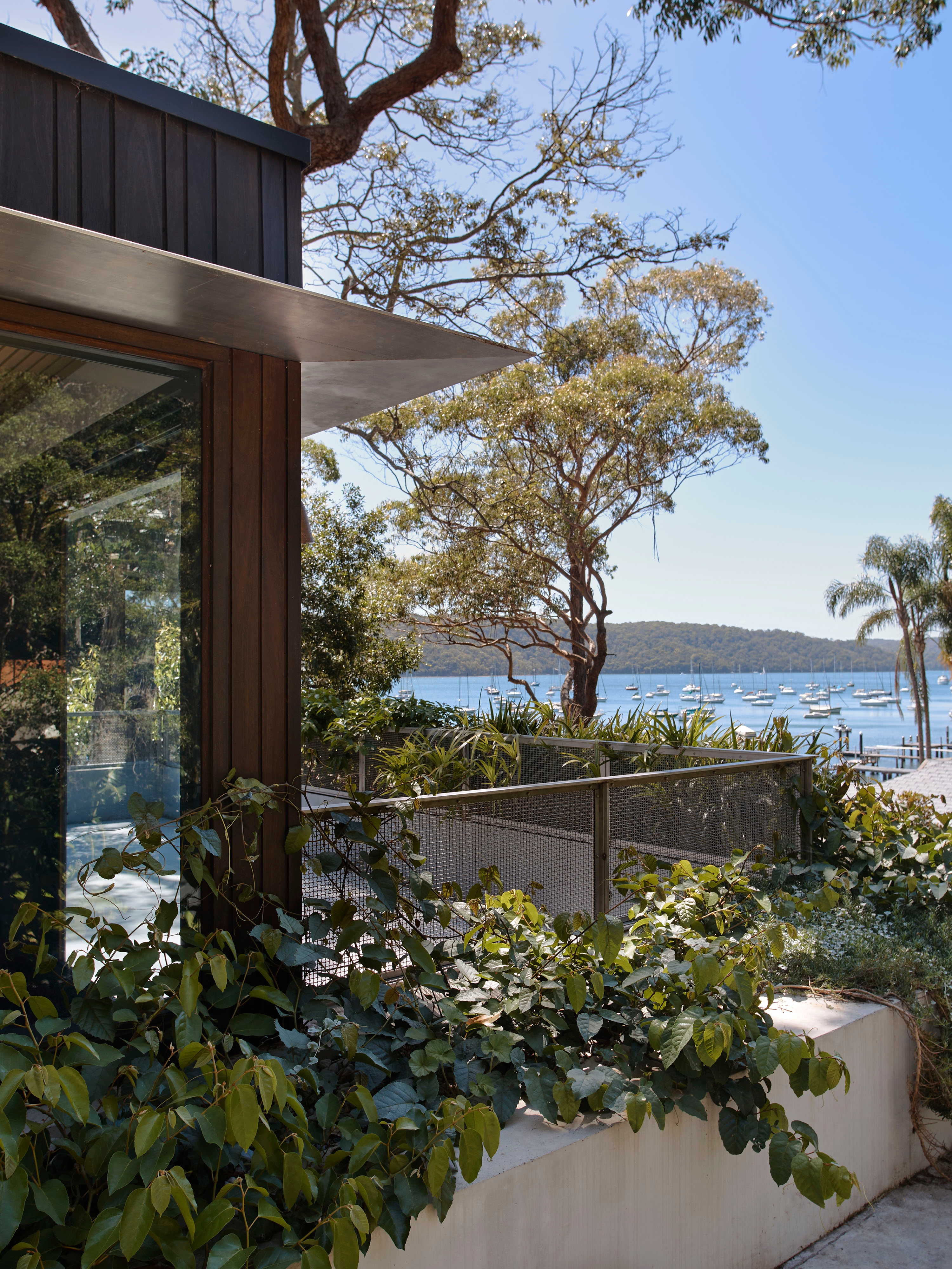 On the leafy shoreline of Clareville Beach, this new residential dwelling recedes behind a green canopy cascading from the rooftop down and growing up from below blurring the lines between outside and in. Hints of Brazilian Modernism are seen in the concrete form with deep drawn-out eaves, voids and openness.