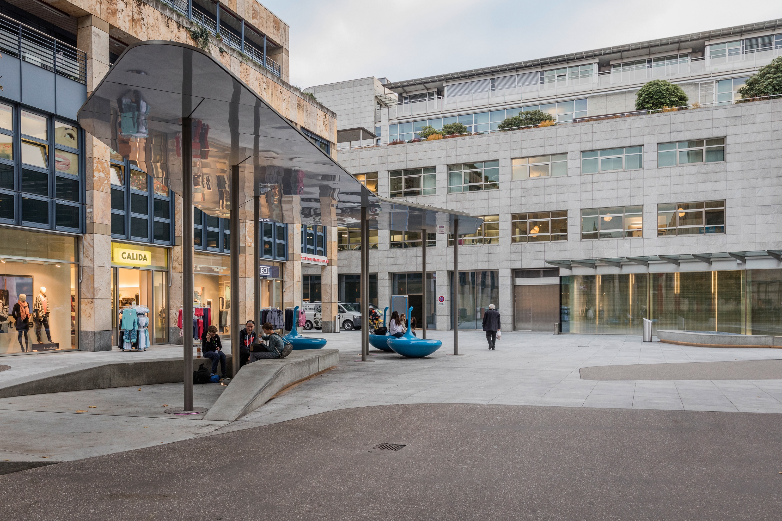 One original beside the next. Metalli is arguably the most preferred shopping passage in Zug. Islands of seating, trees and water are a key attraction that draw visitors to the indoor courtyard to relax, lounge and enjoy the attractions on offer. The islands are made with concrete elements which together integrate into a harmonious ensemble. It is made up of 51 unique pieces.