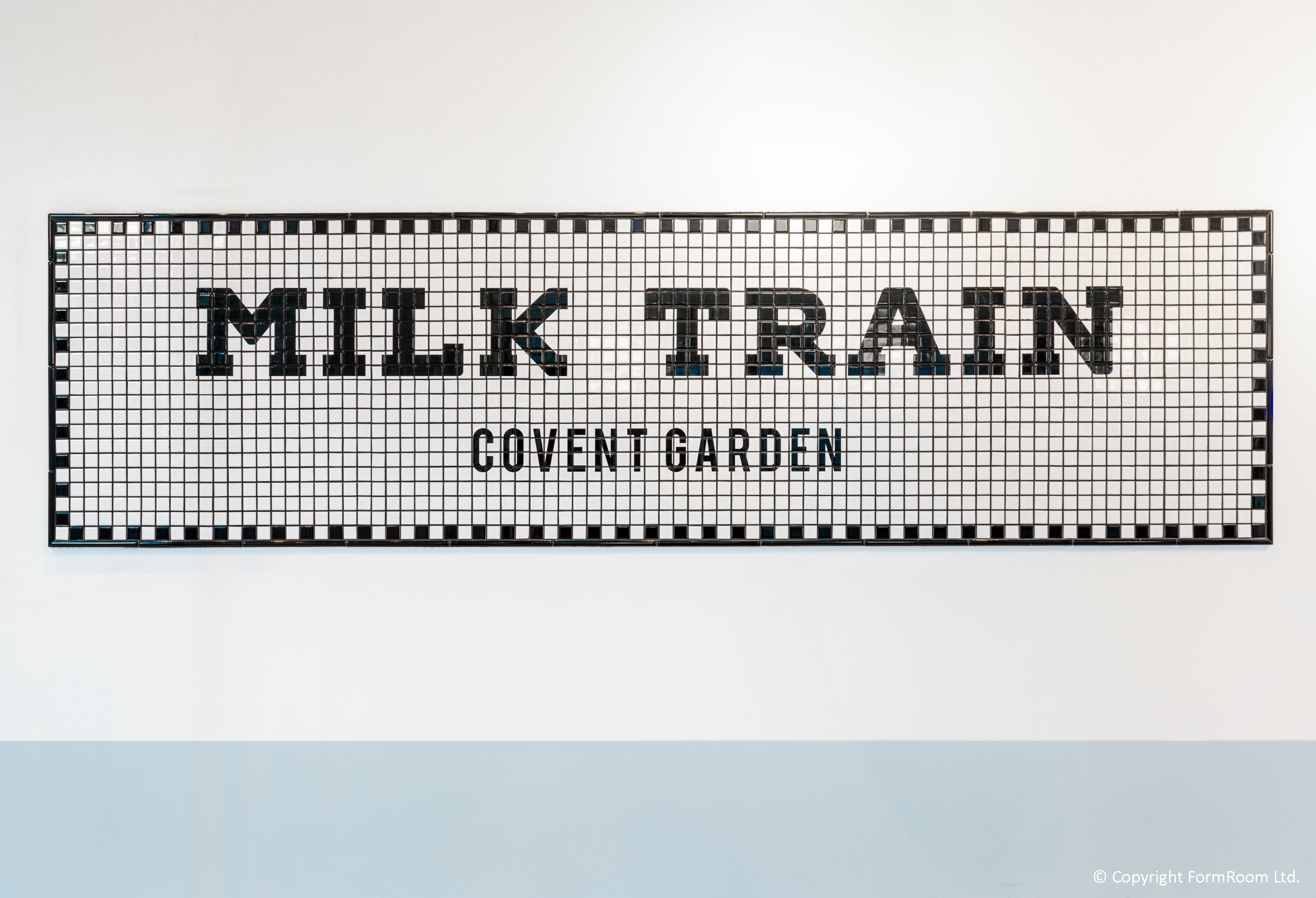 FormRoom created a unique, dream-like landscape for the Milk Train customer. A predominately monochromatic palette is utilized to echo the Art Deco movement popularized amongst traditional train stations and platform iconography. Covent Garden was to provide the core brand design blueprint, by which all future sites will evolve from.