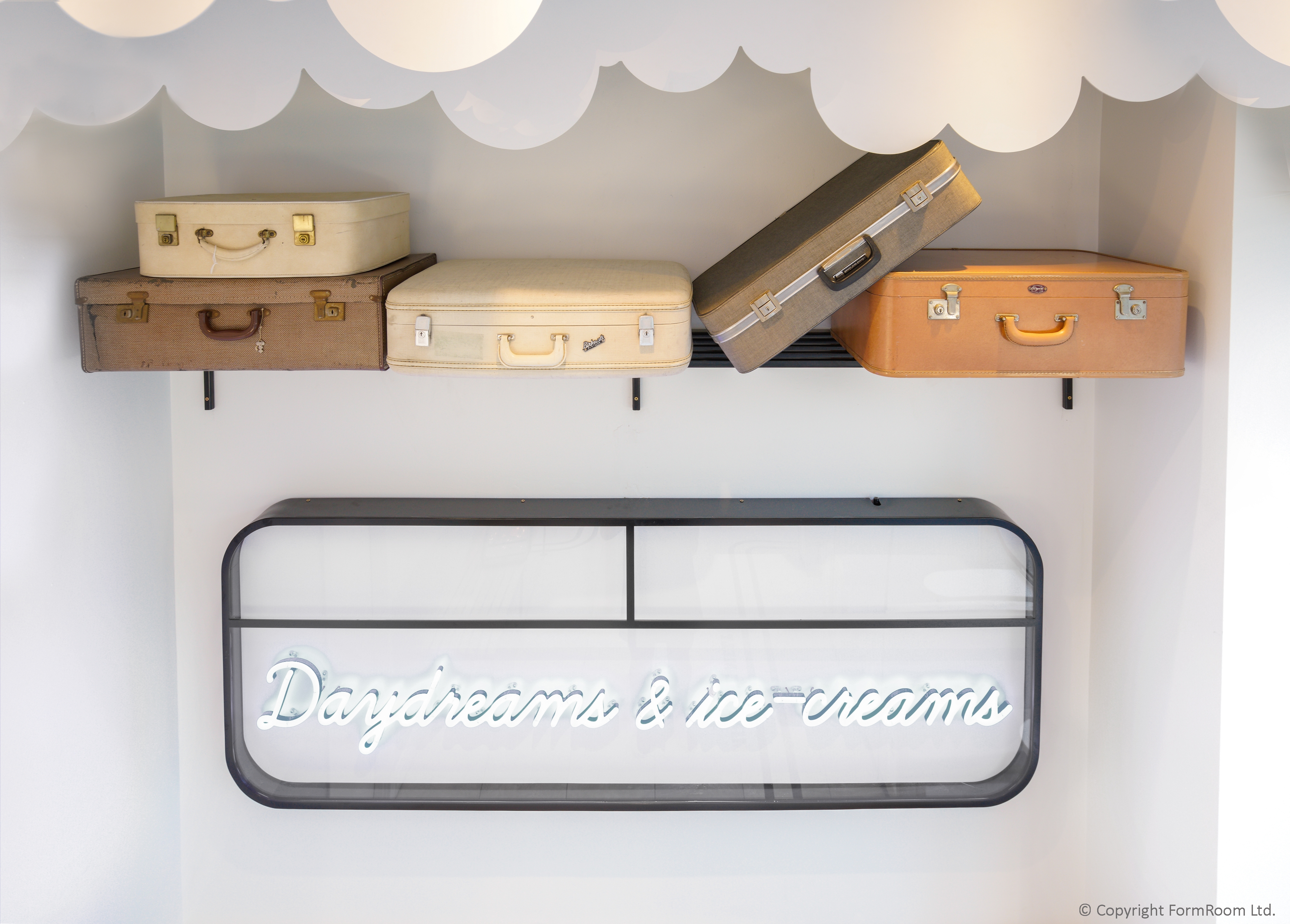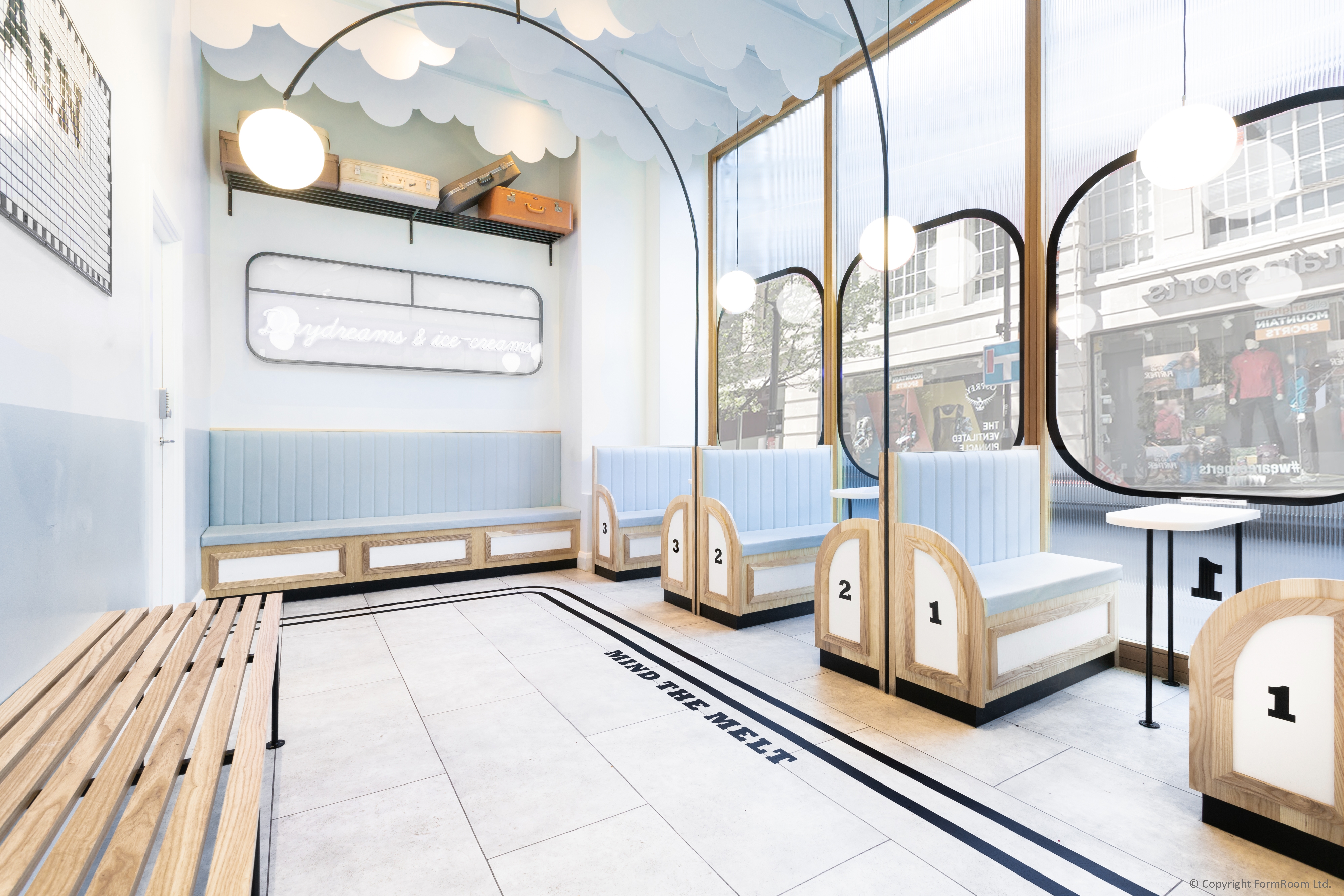 The key focus was to create a space that was easily adaptable to all trends whilst not deviating from their dreamy ice cream products and the core brand identity. It was important too to consider the volume of customers the brand experiences due to their high popularity, so a space which felt accommodating but limited excessive dwell time in favour of a faster customer experience.