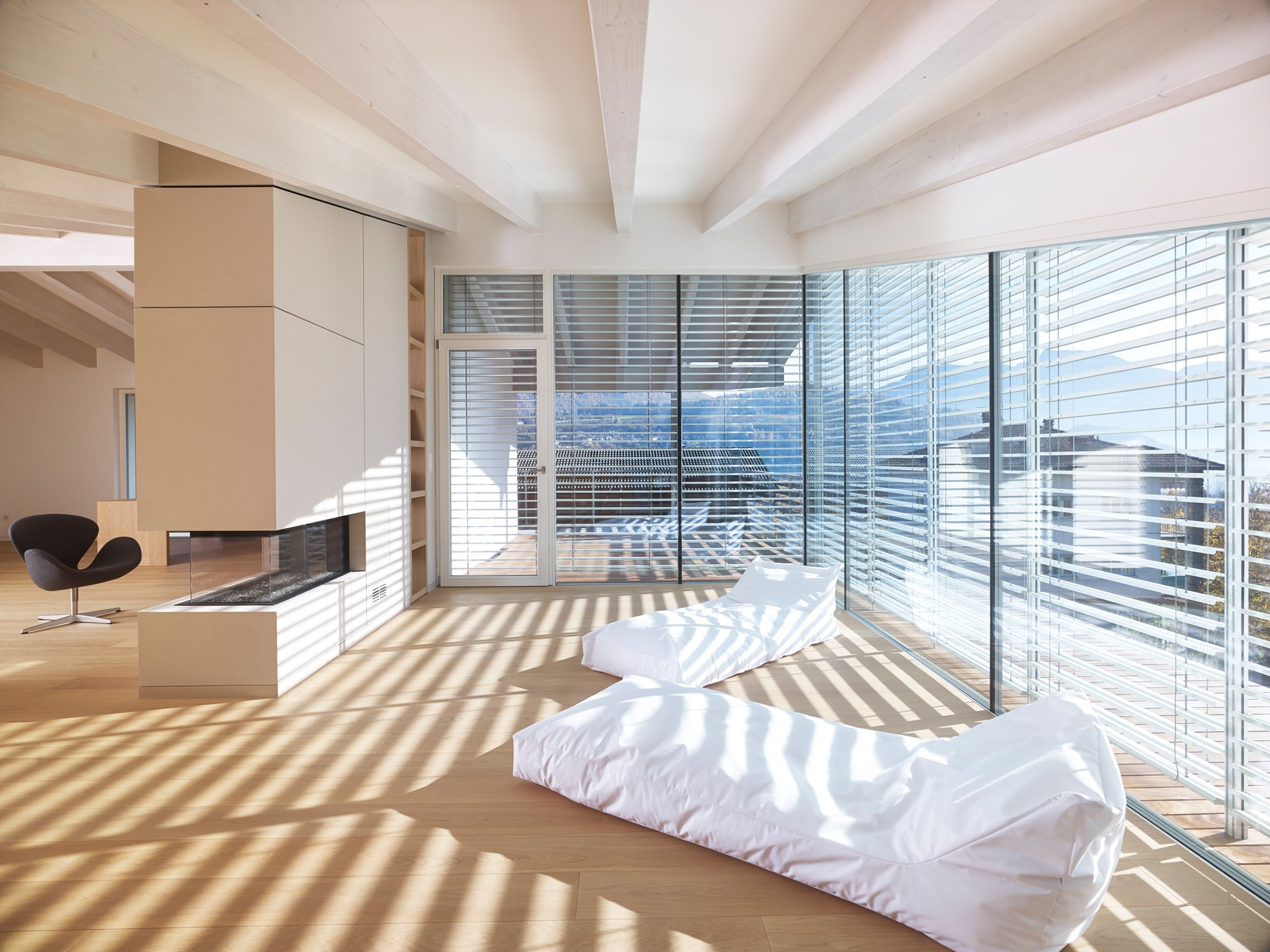 The MP apartment was originally built in order to enjoy the landscape of Caldonazzo lake, near the village of S. Cristoforo, traditionally considered "Trento's beach”. The apartment is surrounded by gardens and orchards and has a beautiful view on the lake. It is developed on three levels, beyond the basement: on the ground floor is the living area, the first floor hosts the bedrooms, and the attic is dedicated to study and relaxation activities. The main façade faces south, maximizing the benefits of the winter sunshine.