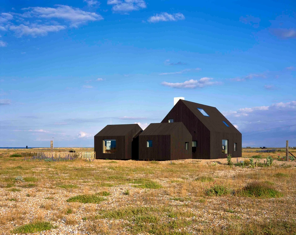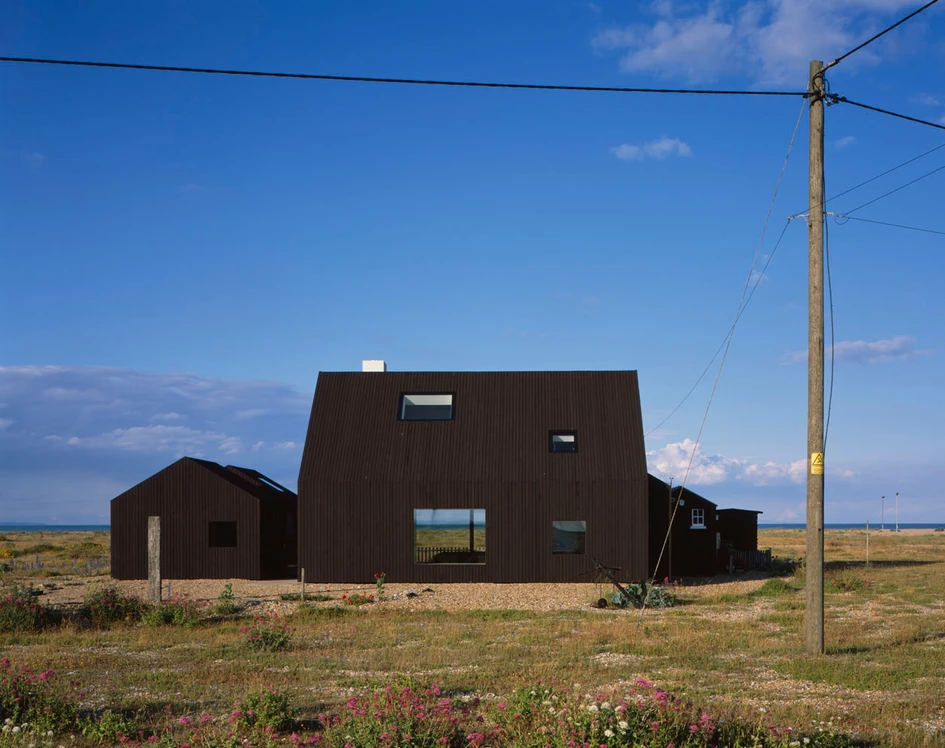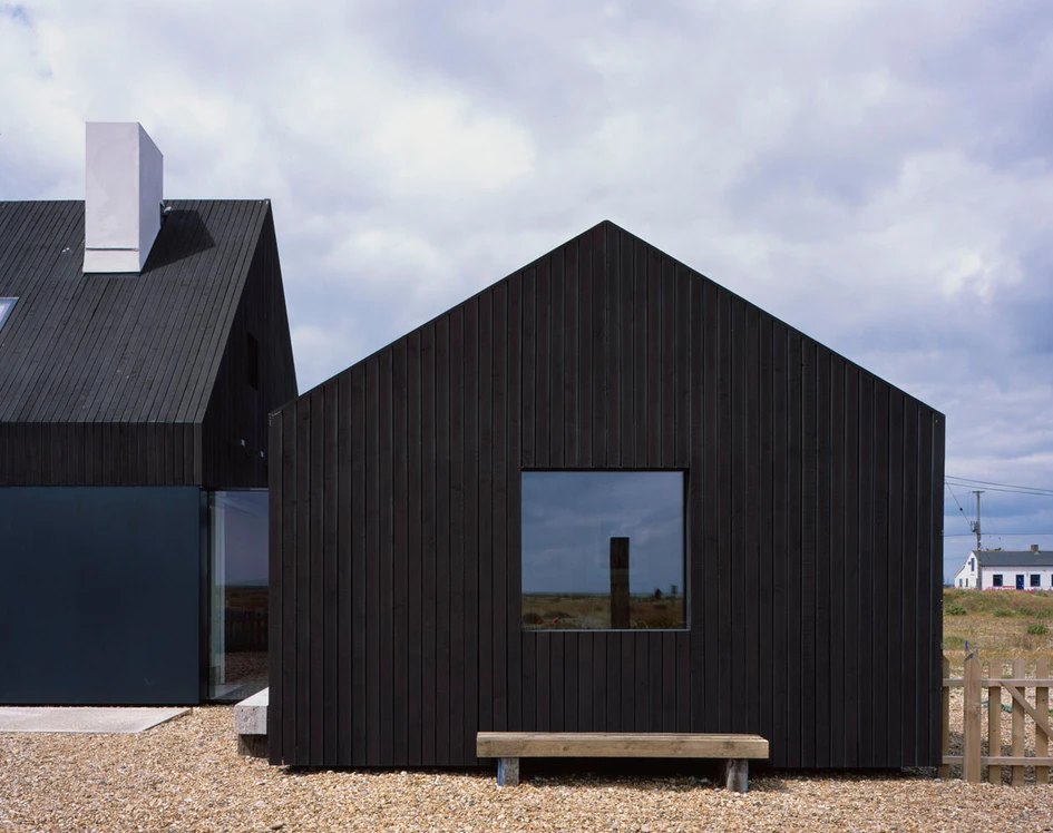 Siniša Rodić commented “The existing sheds and cottage were clad in black timber. We felt that the site’s contribution to the larger scale assembly of black buildings and clusters was important to retain. There is a sense of a bigger project taking place in Dungeness which we felt we were contributing to. Our piece was about the inherent beauty of simple ‘elemental’ forms and how these can create complex spaces and experiences within a cluster.. All architectural clutter was removed in favour of creating an almost abstract form”. Siniša Rodić