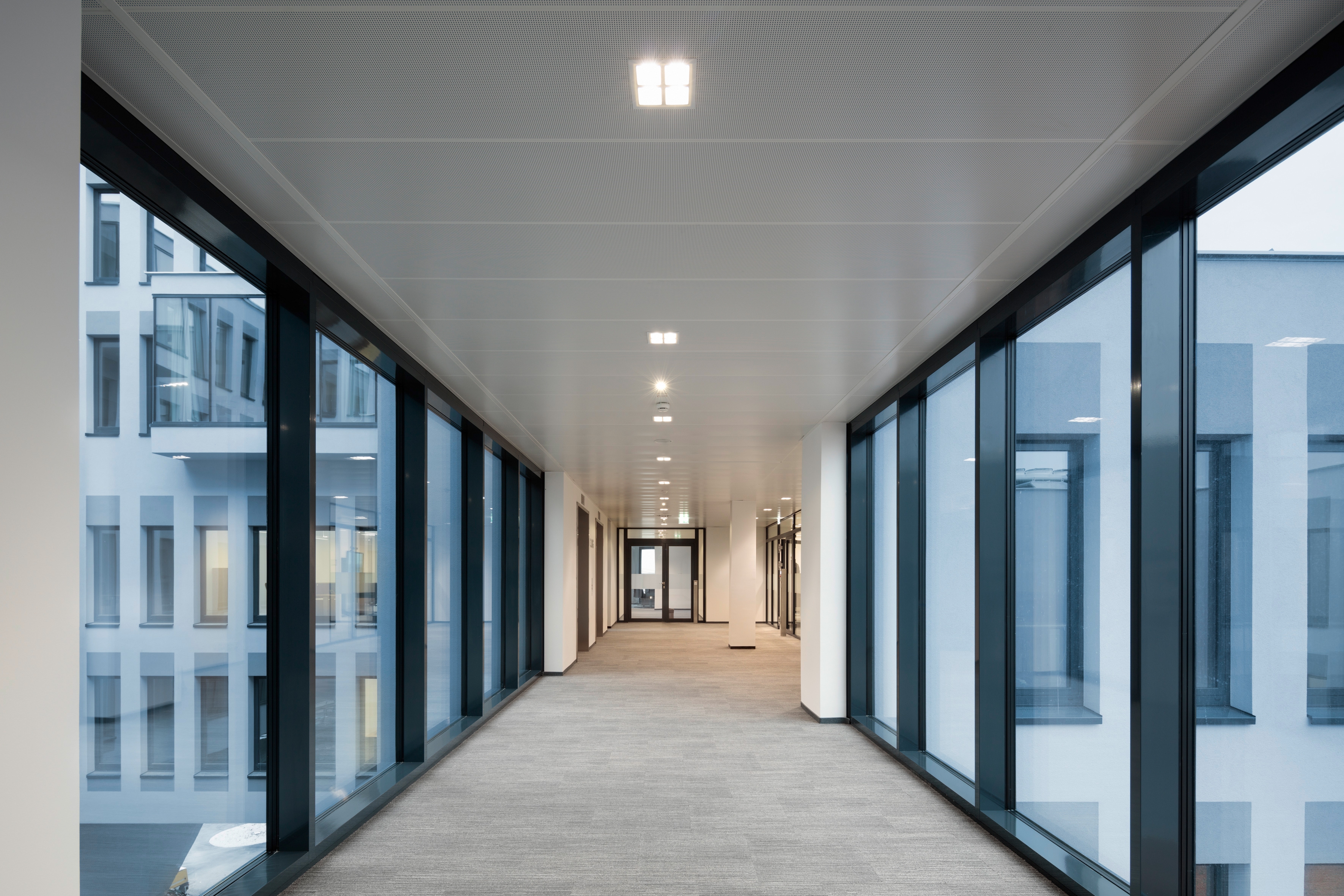 With a gross floor area of around 13,000 square meters the building offers space for around 300 employees. Arranged around two green “oases”, the offices and meeting rooms offer an excellent user experience.