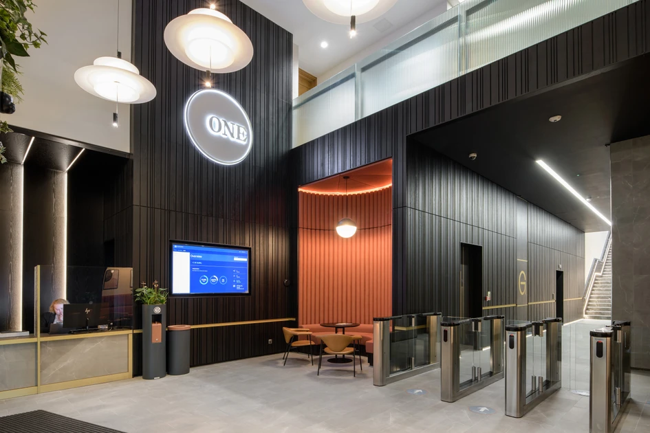 Leading Manchester interiors agency SpaceInvader has transformed the look of one of the city’s landmark developments at One Piccadilly Gardens for client LGIM Real Assets (Legal & General). The well-known building, originally designed by architects Allies and Morrison and developed in 2003 by Argent, faces onto the Gardens with high-impact red-brick frontage. The building is comprised of retail on the ground floor and office space above and was sold to Europa Capital in 2011 before being purchased by Legal & General in 2014. The brief to SpaceInvader for the new interiors of the six-storey, Grade A office building was to transform its look and feel into a more inviting, dynamic space that promoted a sense of welcome, wellbeing, flexibility and collaboration, via a scheme that would match the building fabric in terms of character and presence.