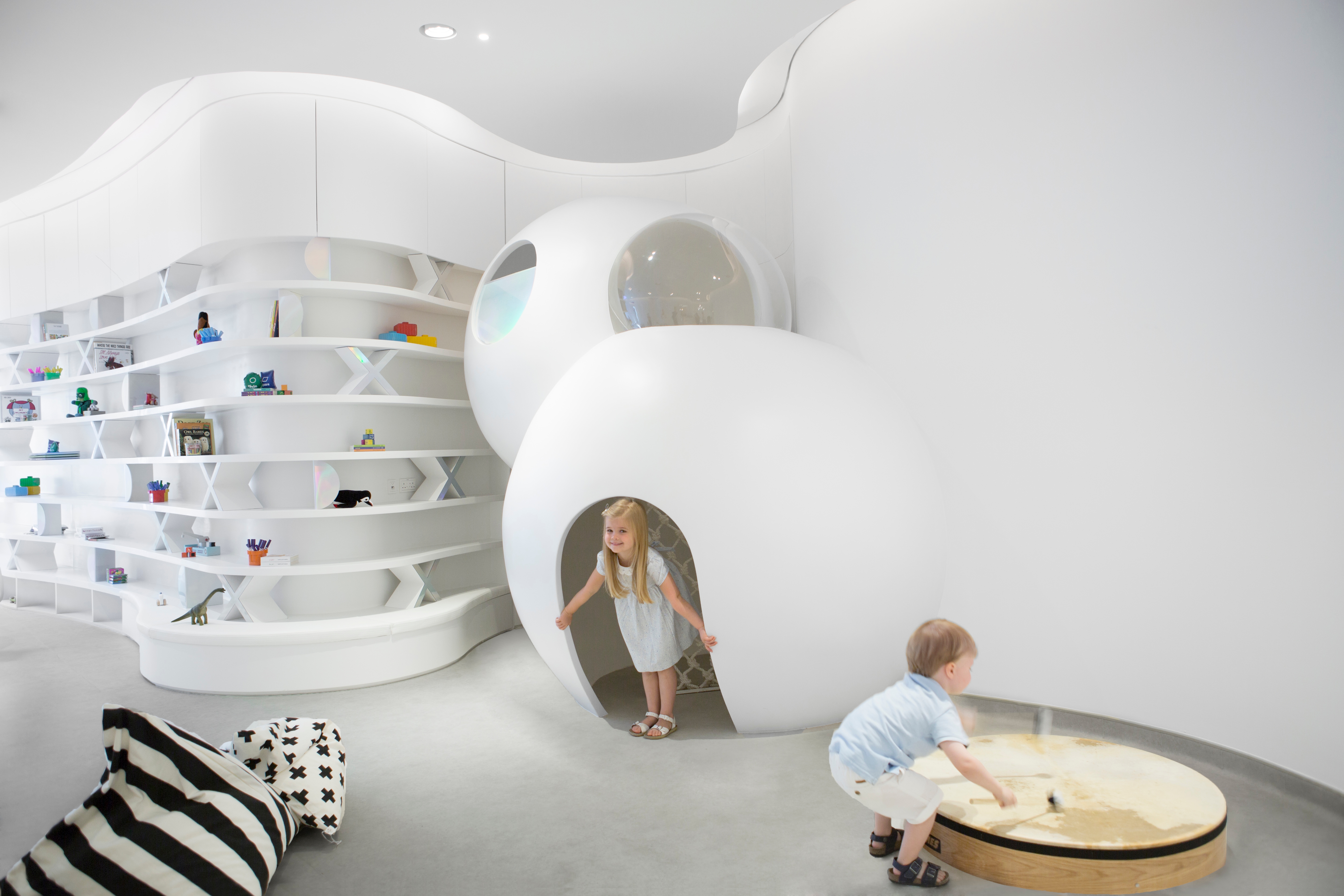 Pallavi says: “Research shows that children find curves far more soothing than harsh angles, but constructing rooms with right angles is much easier. We solved this problem by using Agata’s parametric design skills, then working with a boat-builder in Dubai to make it. It was very experimental for them – they’d never worked on interiors before – but it’s worked beautifully.”