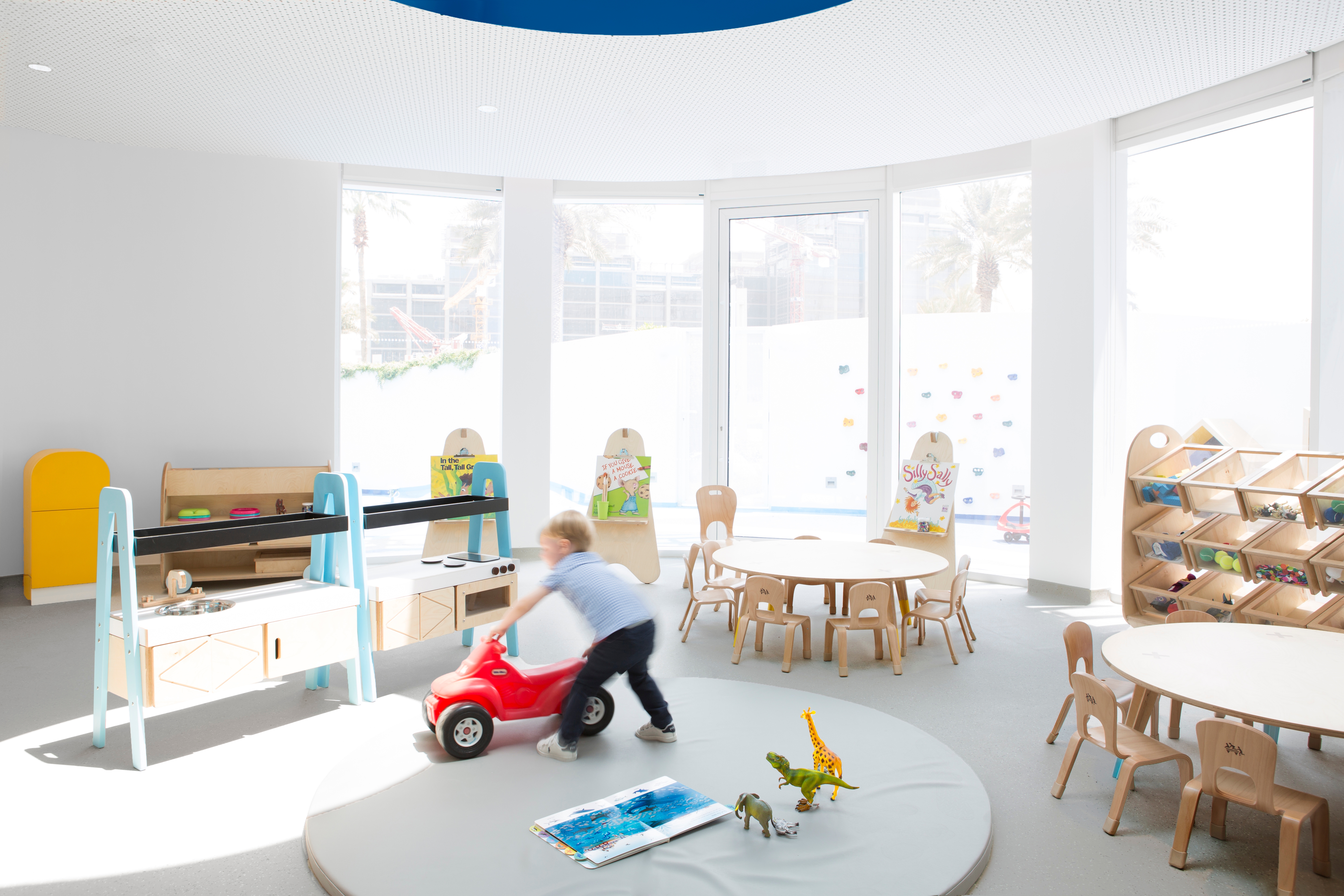 The heart of the 600-square-metre nursery is called Mars Lab – a nod to the UAE’s ambitious Mars space programme. The Mars Lab is a community space, where children of all ages, along with teachers and parents, gather in large or small groups.