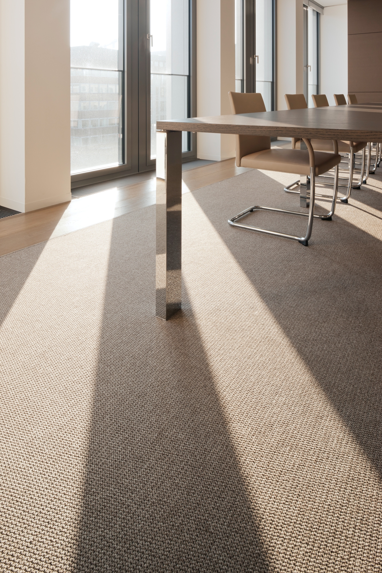 Eco Tec, in a range of shades, underscores the clarity and harmony of the interior design as continuous carpeting and loose-lay carpet in the offices, corridors and conference rooms. CAS, the Carpet Concept Acoustic System with its particular ability to absorb sound, also ensures balanced room acoustics.