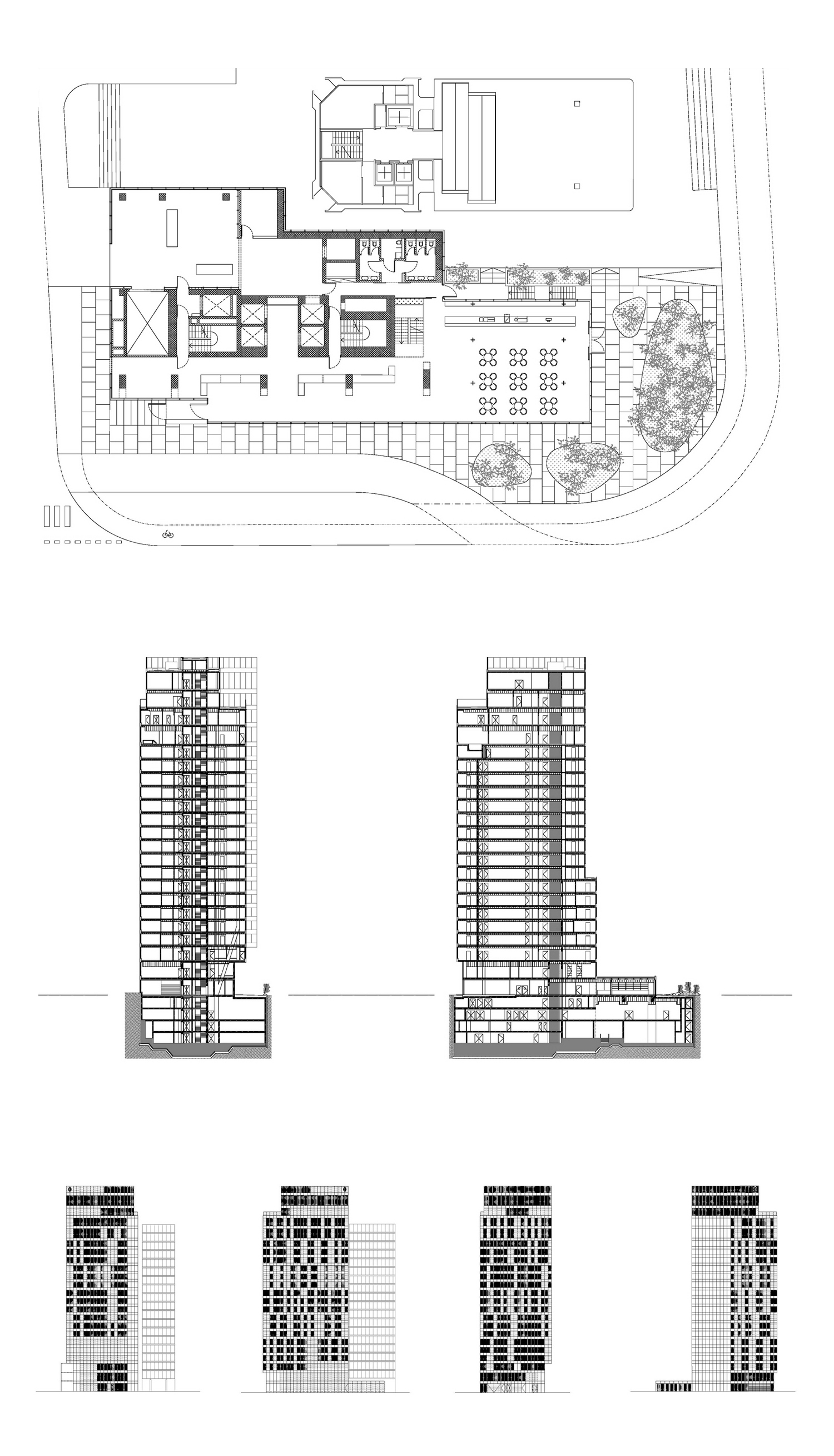The program consists of 185 hotel rooms, lobby with a café in Ground Floor, SPA facility with a pool and a Restaurant on the roof. The restaurant also has a rooftop terrace with nice views overlooking the city. Most of the BOH program is located underground.