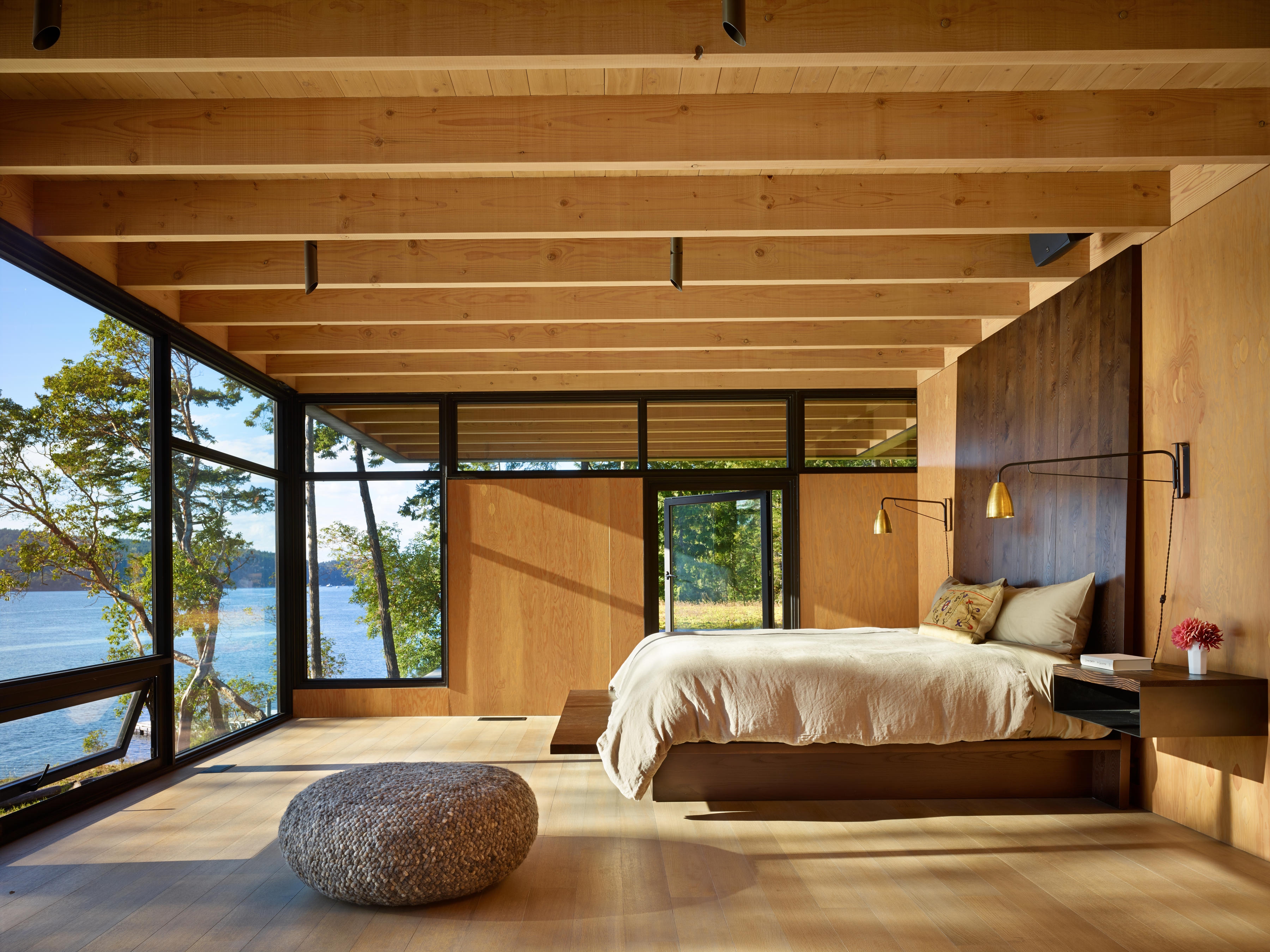 Nestled into a dense, wooded shoreline site, this intimate retreat serves as a gathering space for friends and family throughout the year, but takes particular advantage of the temperate Pacific Northwest summers. Located near the main house on a site accessed by boat, Pole Pass is situated to hug the dense woods while directing views out over the meadow and nearby harbor to the Salish Sea.