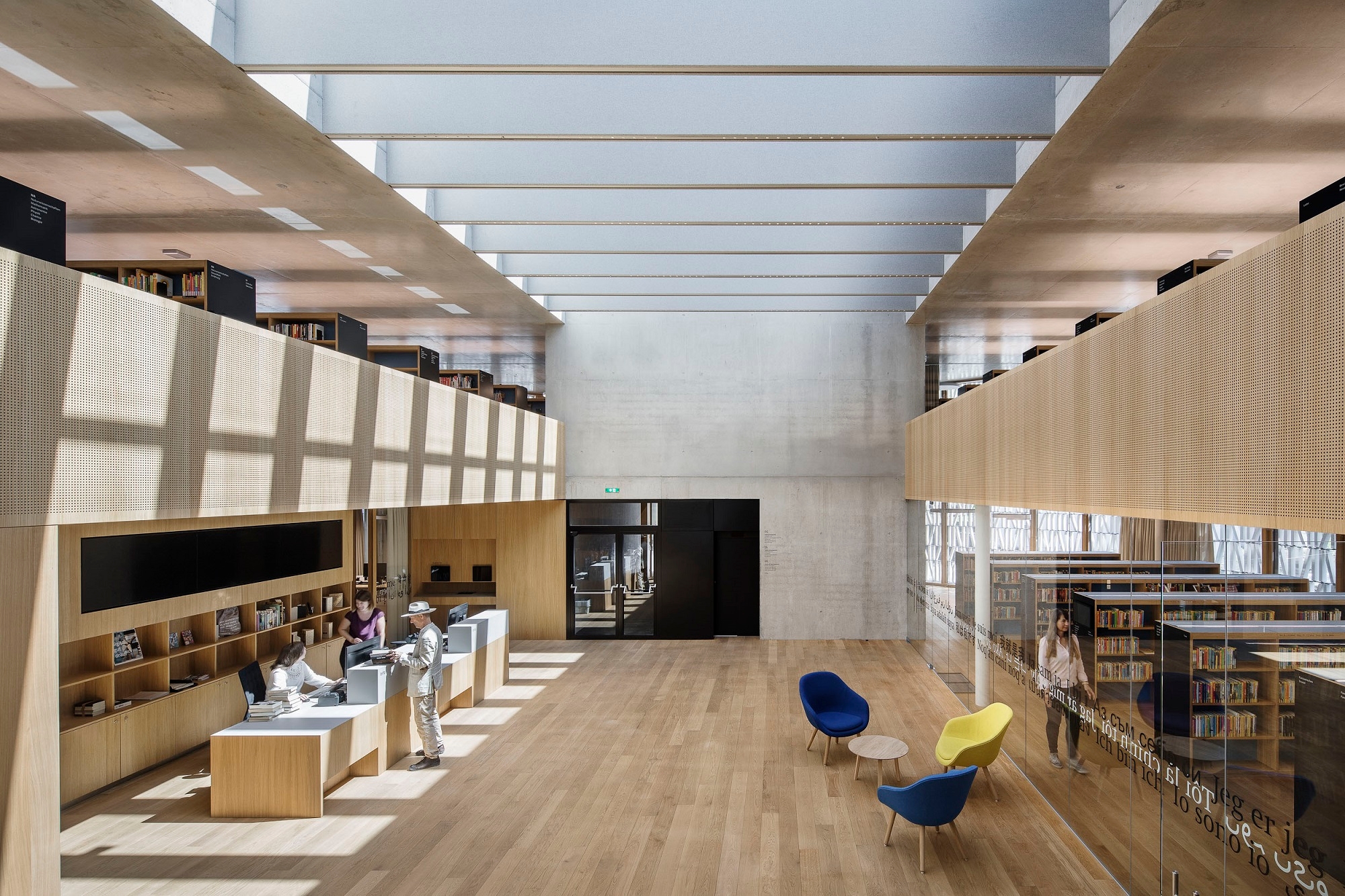 The library of the town of Dornbirn was designed as an inter-generational sharing, meeting and learning space. It promotes reading and the practice of languages, the exploration of computerized research methods and new forms of communication.