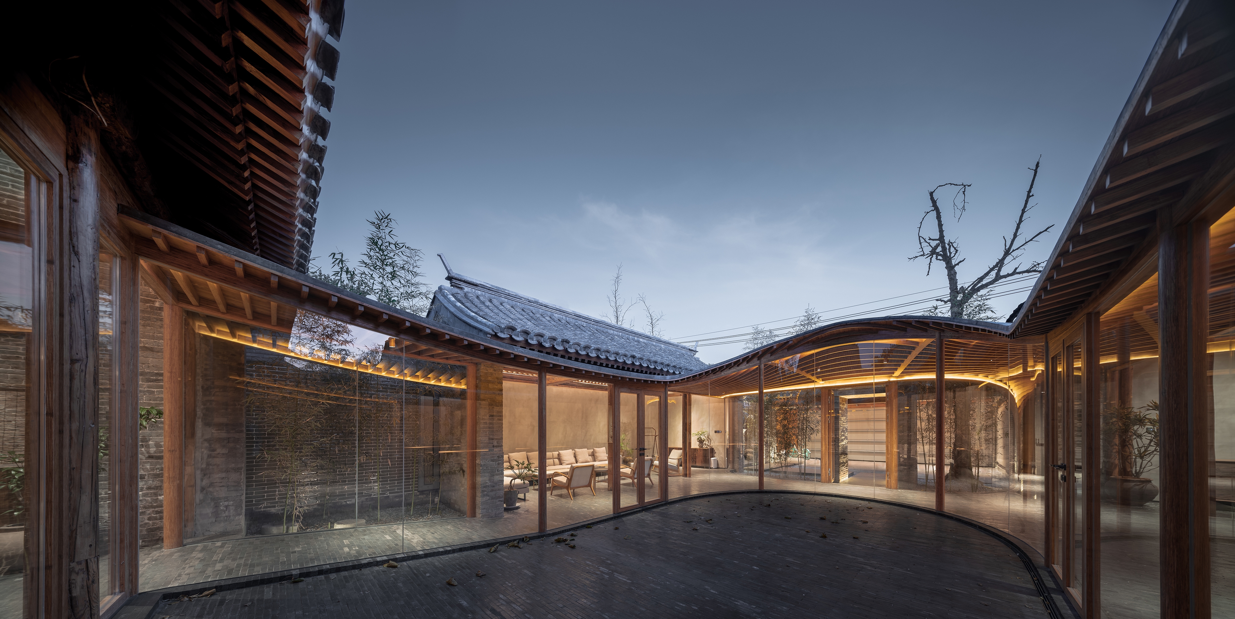 ARCHSTUDIO embedded a veranda — a basic element of traditional Chinese architectures, into the old Siheyuan to link up the seven separated pitched-roof houses. The veranda functions as a circulation route, reshapes the spatial pattern and layers, and provides a playful walking experience as well as fantastic views.