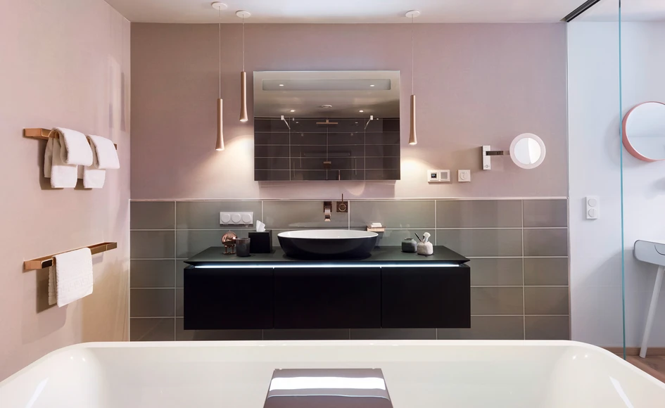 Following its positive reception last year, the architect’s office JOI-Design, which specialises in hospitality design, has once again created exclusive suites for the Radisson Blu hotel chain in collaboration with the magazine Wohnidee. The spacious bathroom and separate WC in the Modern Serenity suite are fitted with high-quality sanitary products and tiles from Villeroy & Boch.