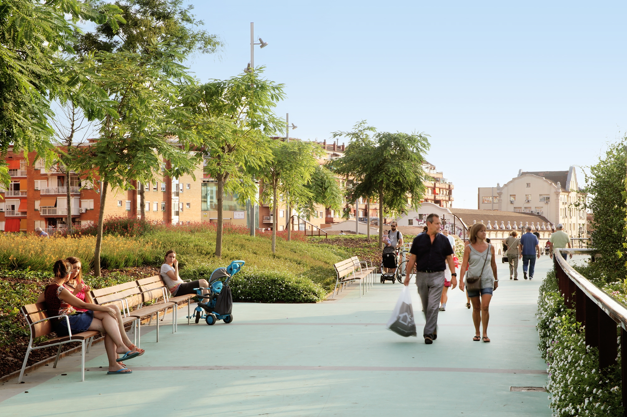 Sants Coverage, a 760 meters long landscaped boulevard opened in 2016, is the first phase of an ambitious project that will cover a 5 kilometers green belt connecting four parks and landscaped areas of Barcelona, L’Hospitalet and Cornellà. It is yet another testament of how new urban development can regenerate urban spaces in order to enhance citizen shared living.