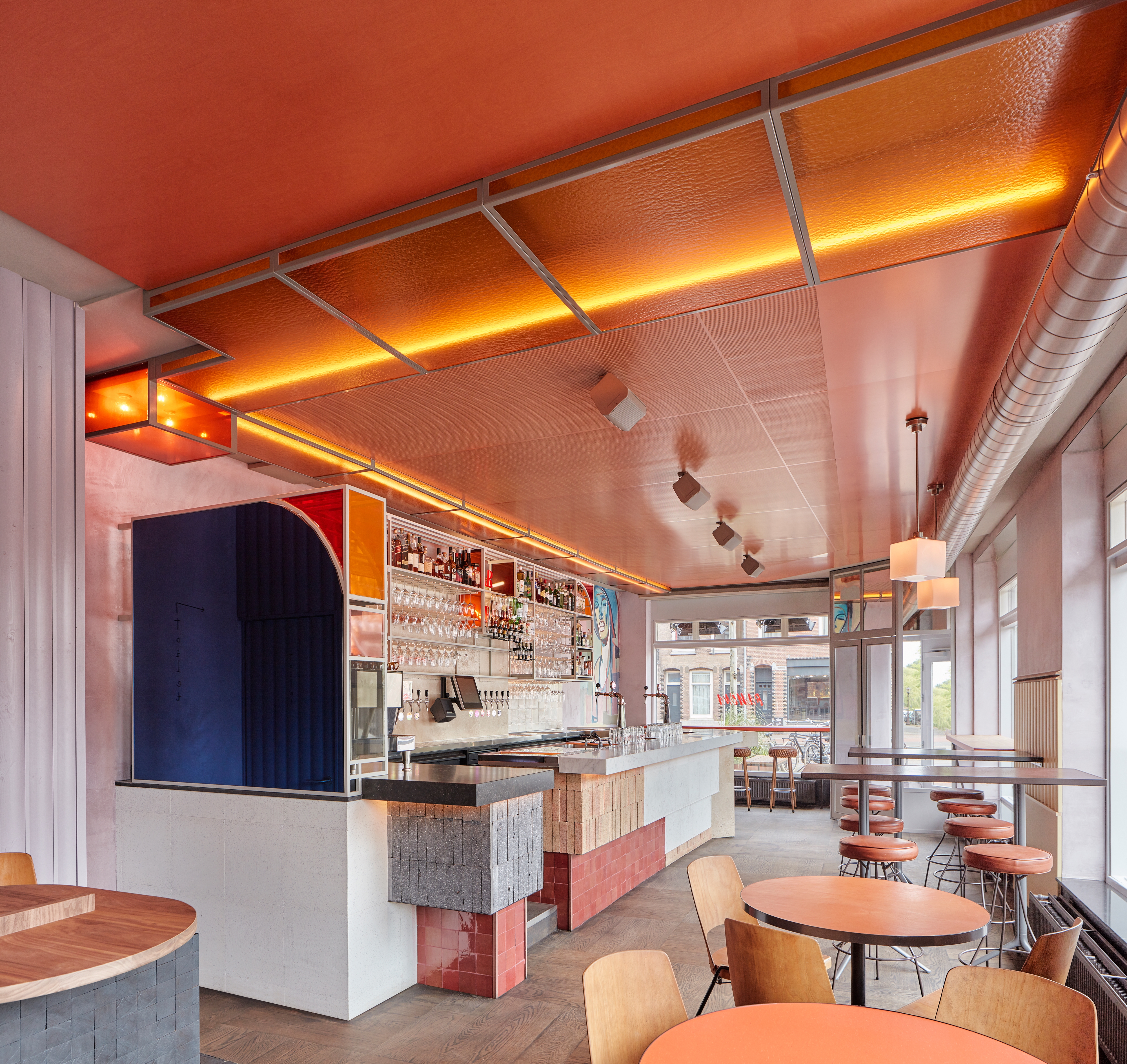On the corner of a quiet canal street and De Clerqstraat in Amsterdam you can find the new girl in town: Ramona. This vibrant, authentic space designed by Studio Modijefsky is the refreshing latest addition to the Amsterdam West hospitality scene.