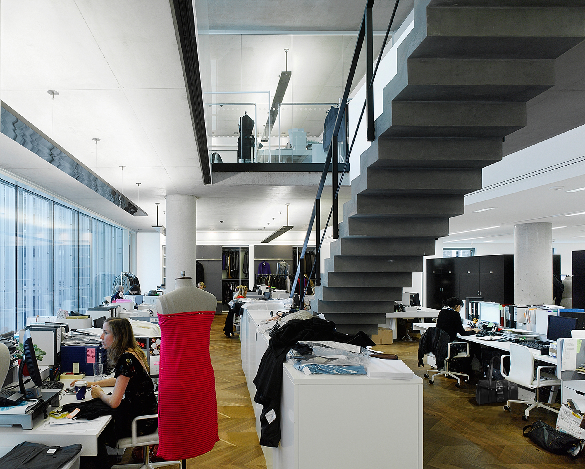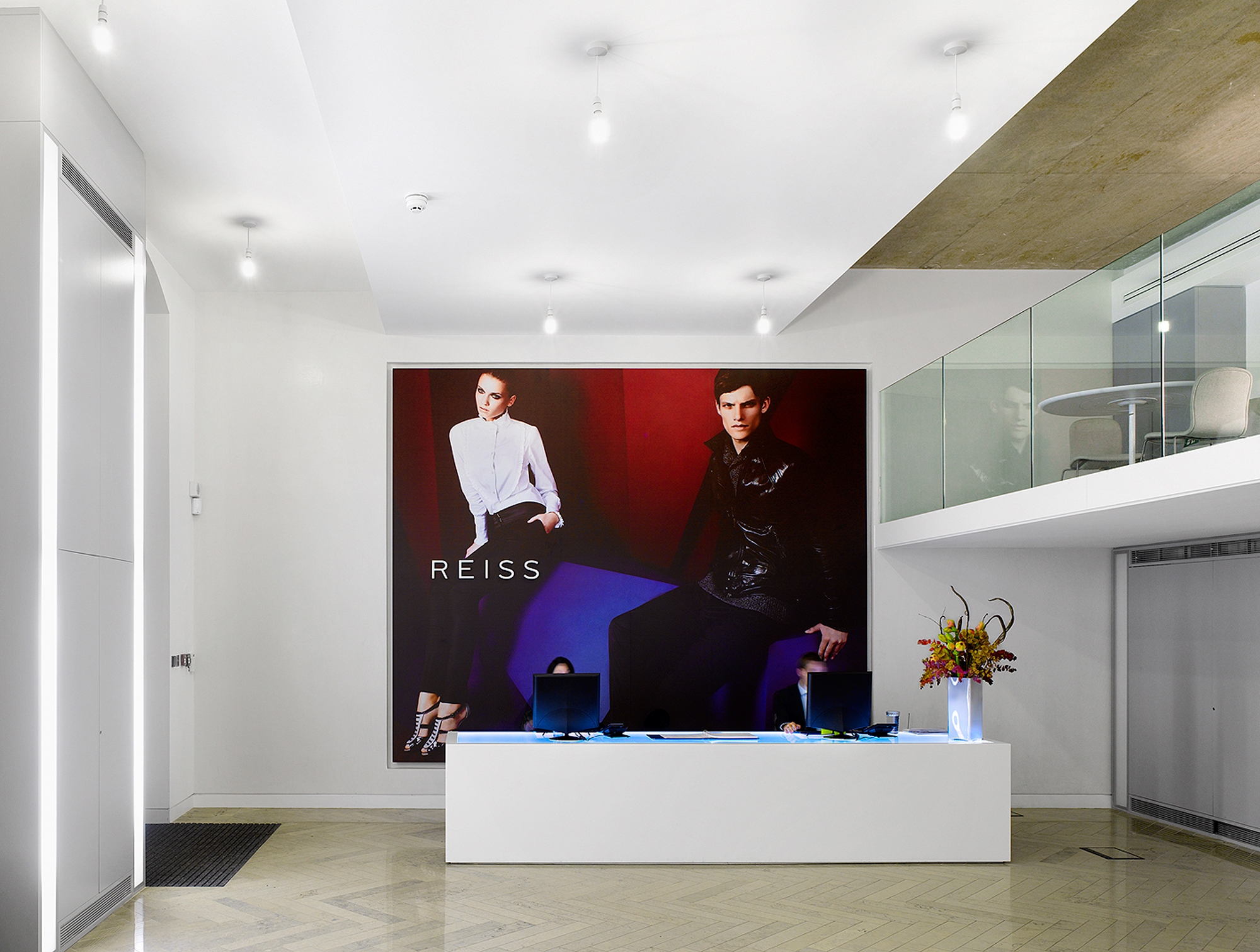 Squire and Partners won a limited competition to design this building, which functions as both a headquarters and an icon for the Reiss brand. The building incorporates three storeys of offices, cutting rooms and design studios, a further floor for corporate meeting rooms and David Reiss’s office, and a luxury penthouse flat. At ground level, a flagship store over two levels is directly overlooked by the shoppers passing down Oxford Street.