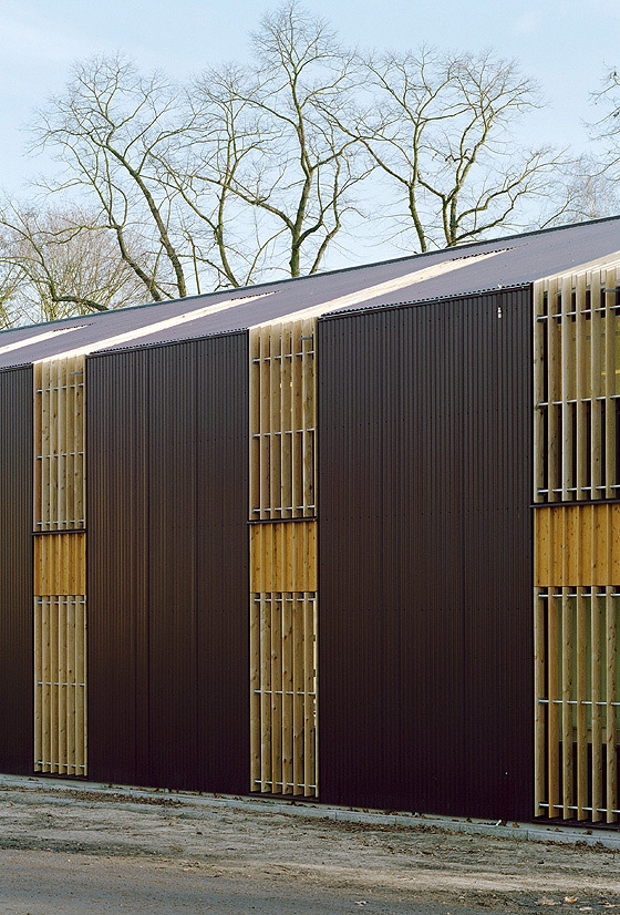 While the facades towards the farmhouse and the yard are glazed full height, the street facade is