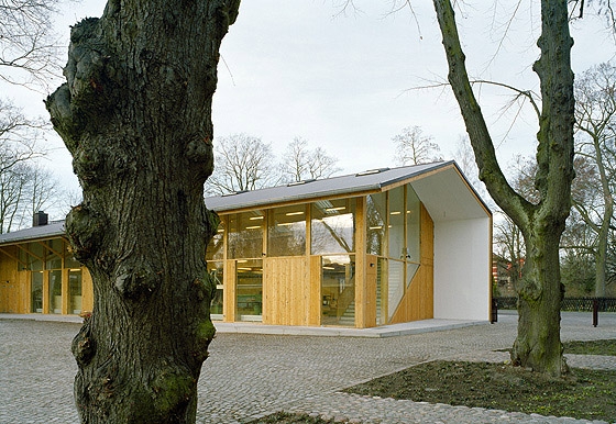 Facade and roof of the workshop form a continuous surface, which is wrapped over the historic