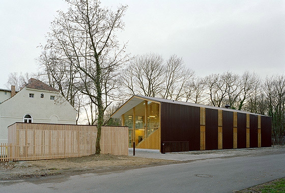 The workshop is designed as a building which opens up towards the yard and the farmhouse.
