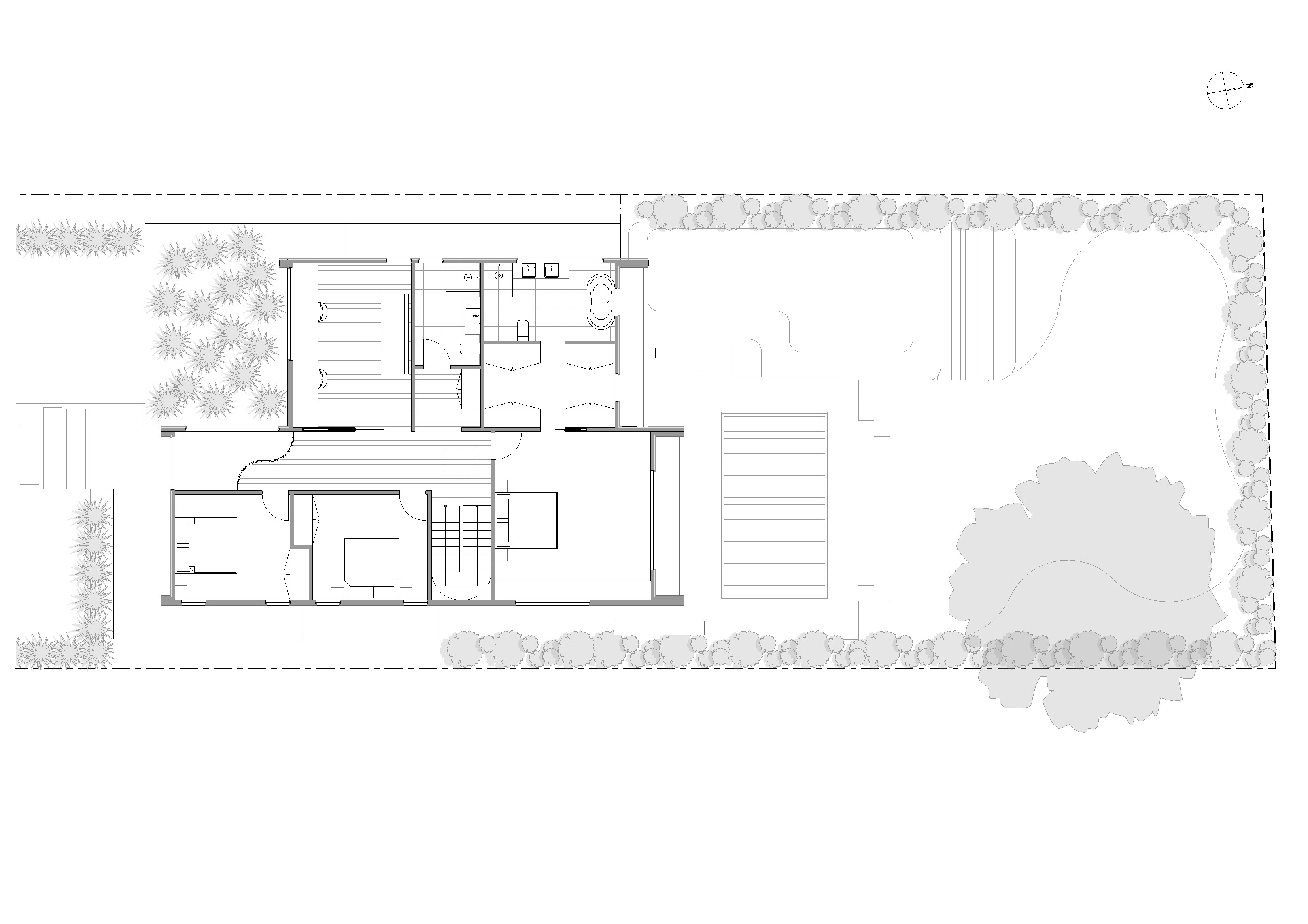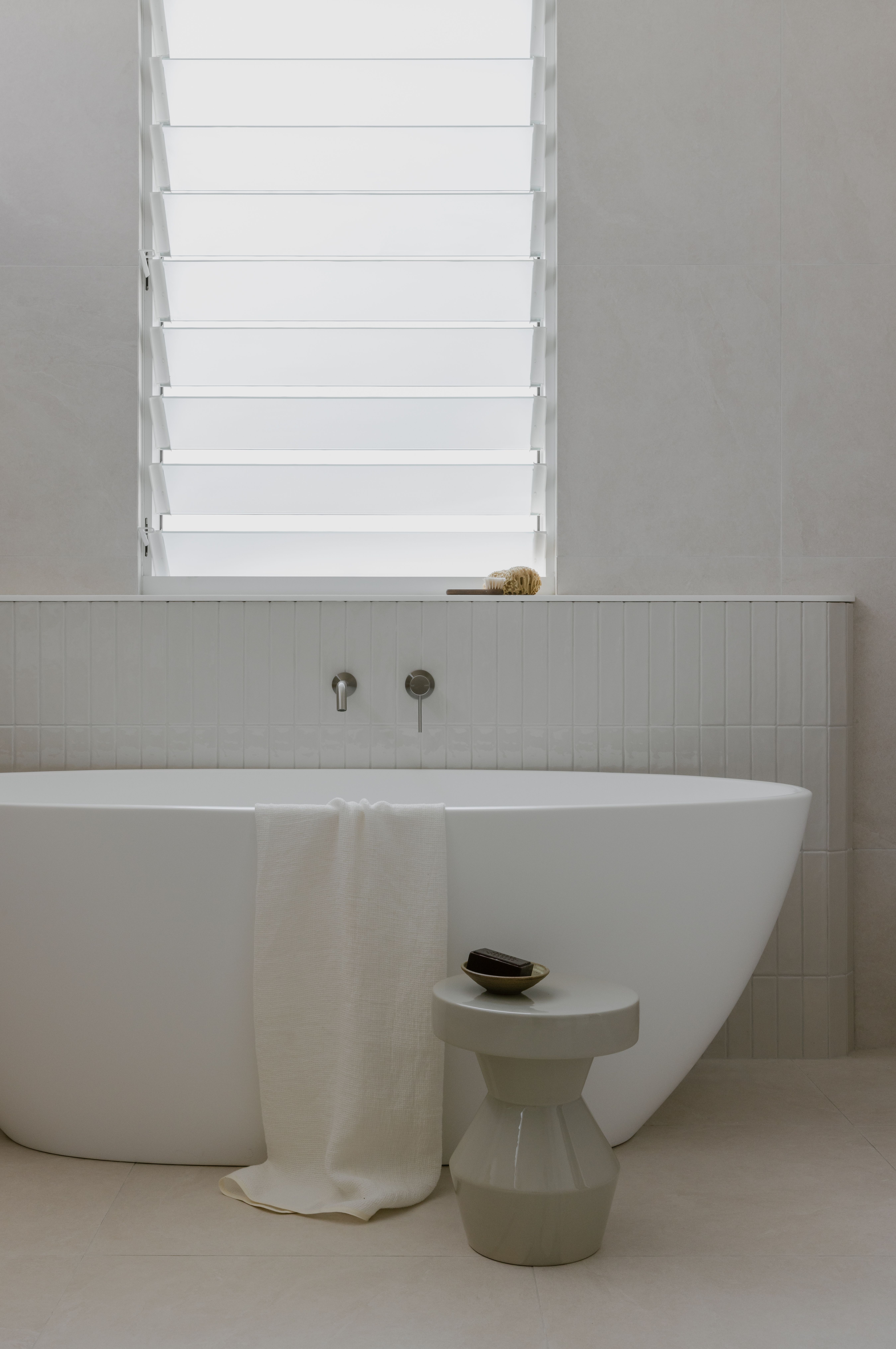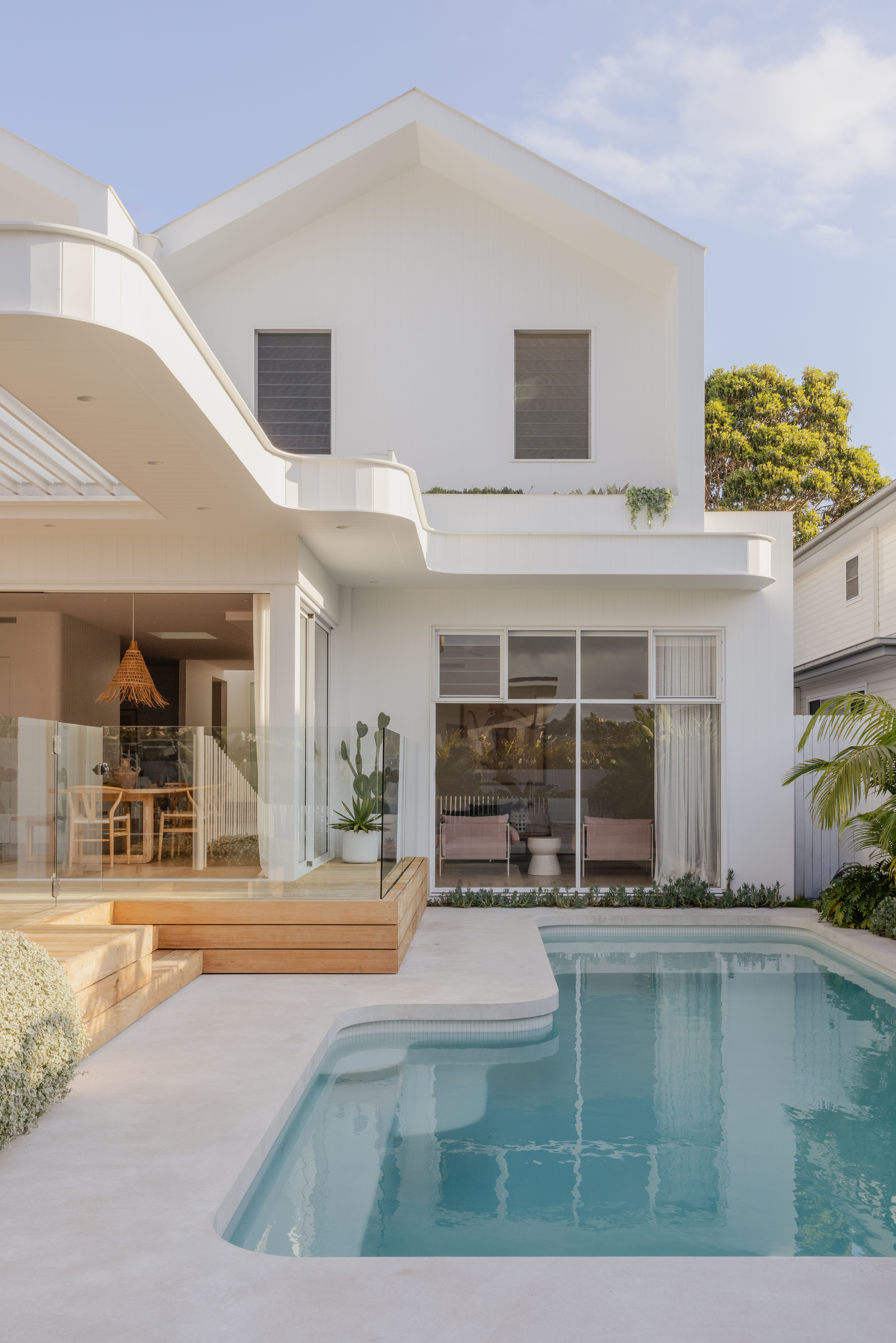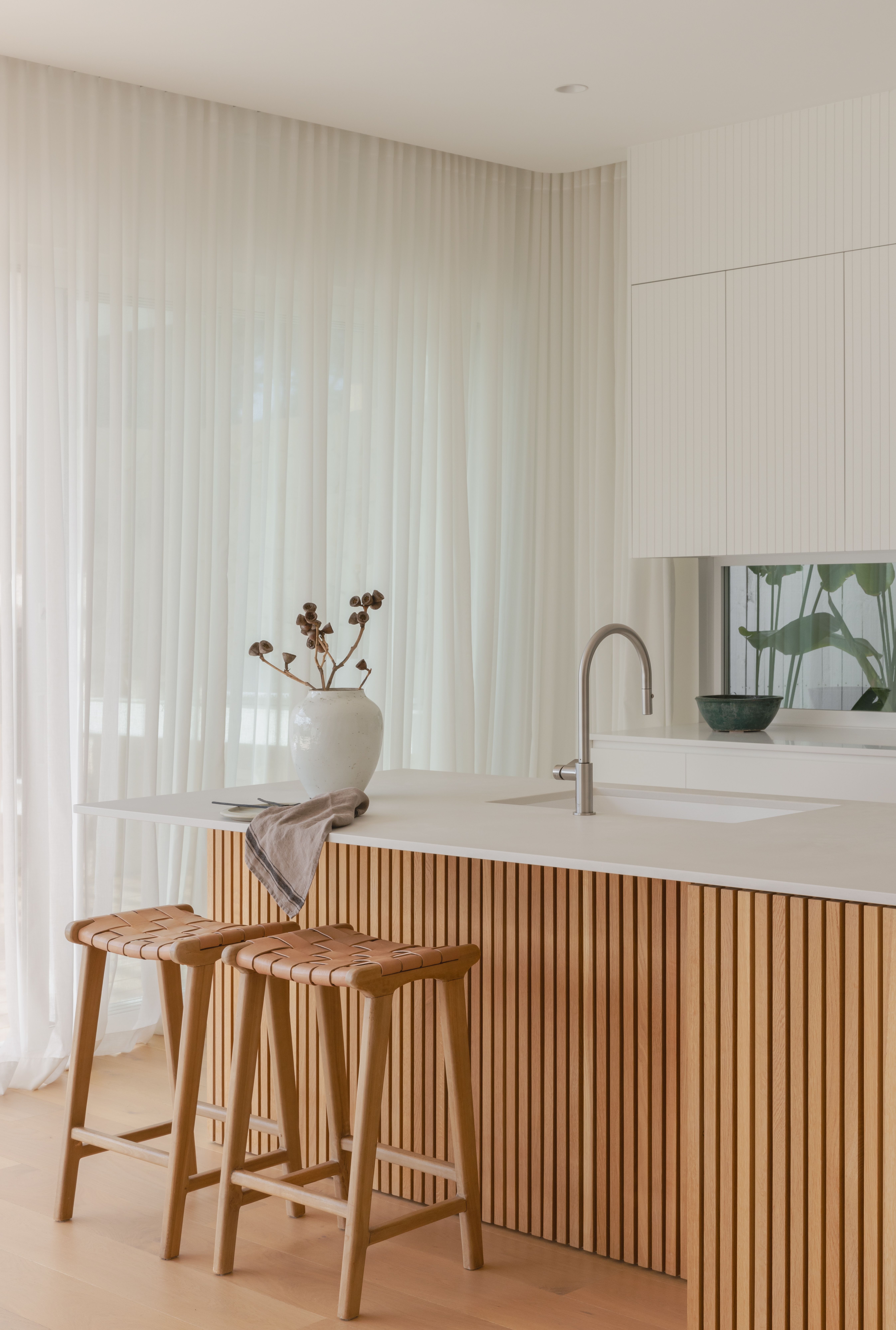 Aptly named after the meaning of the indigenous name of its location, River of Life sits nestled into the established coastline of Curl Curl (derived from the name Curial Curial – i.e. ‘river of life’) and celebrates both an open and connected modern liveability. Surrounded by traditional residential forms, the focus was to create a relaxed yet elevated sanctuary that was sensitive to the natural setting, while also having its own character. The reference to the double-gable silhouette pays homage to the existing context, reinterpreting the use of timber weatherboard panelling vertically instead of horizontally. The result emphasises the height and scale of the home, and together with a neutral and muted colour palette both internally and externally, an overall lightness elicits calm.