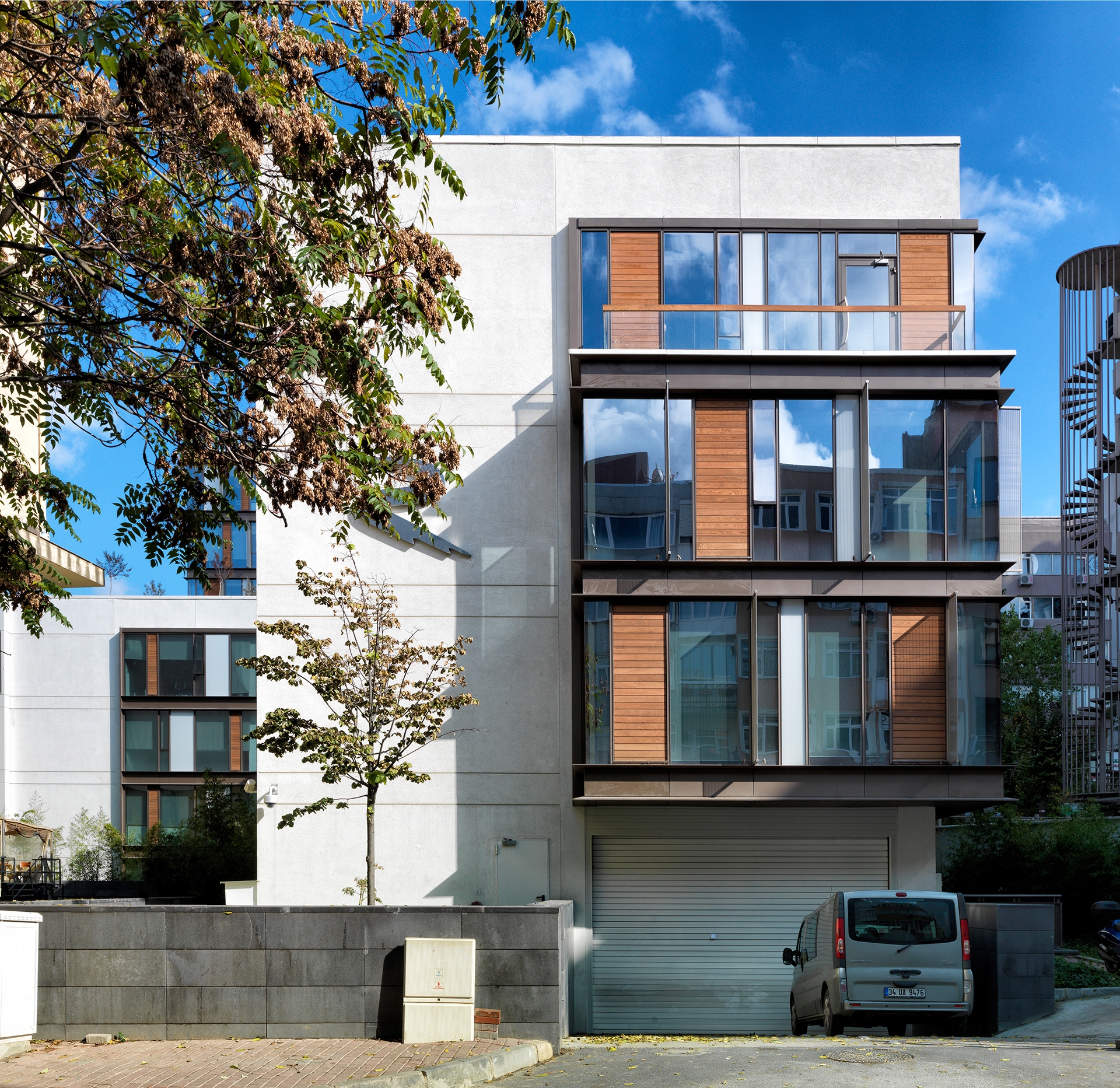 The construction area is limited by the Cemal Sahir street and Raşit Rıza street, which have a 9 meter difference in height. The building is composed of two main volumes: the ground-floor volume with 5.50m height and an upper volume of 18.50m in accordance with the municipal urban regulations. At the heart of the project there is an open-air court yard dominated by trees and a variety of other natural elements that offer a unique sense of tranquility and reclusion from the bustling urban environment of this area of the city.