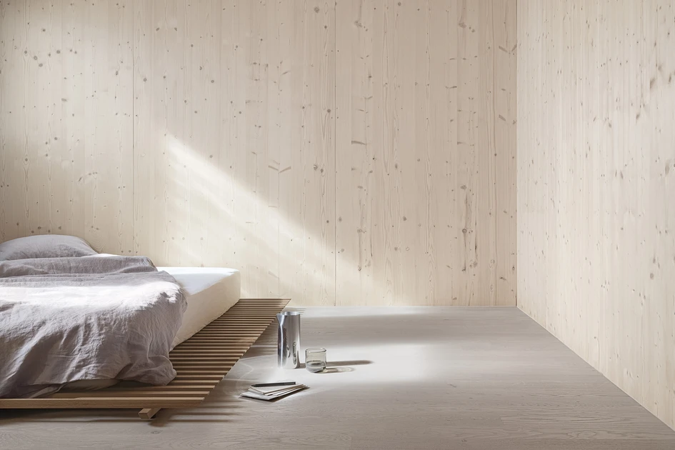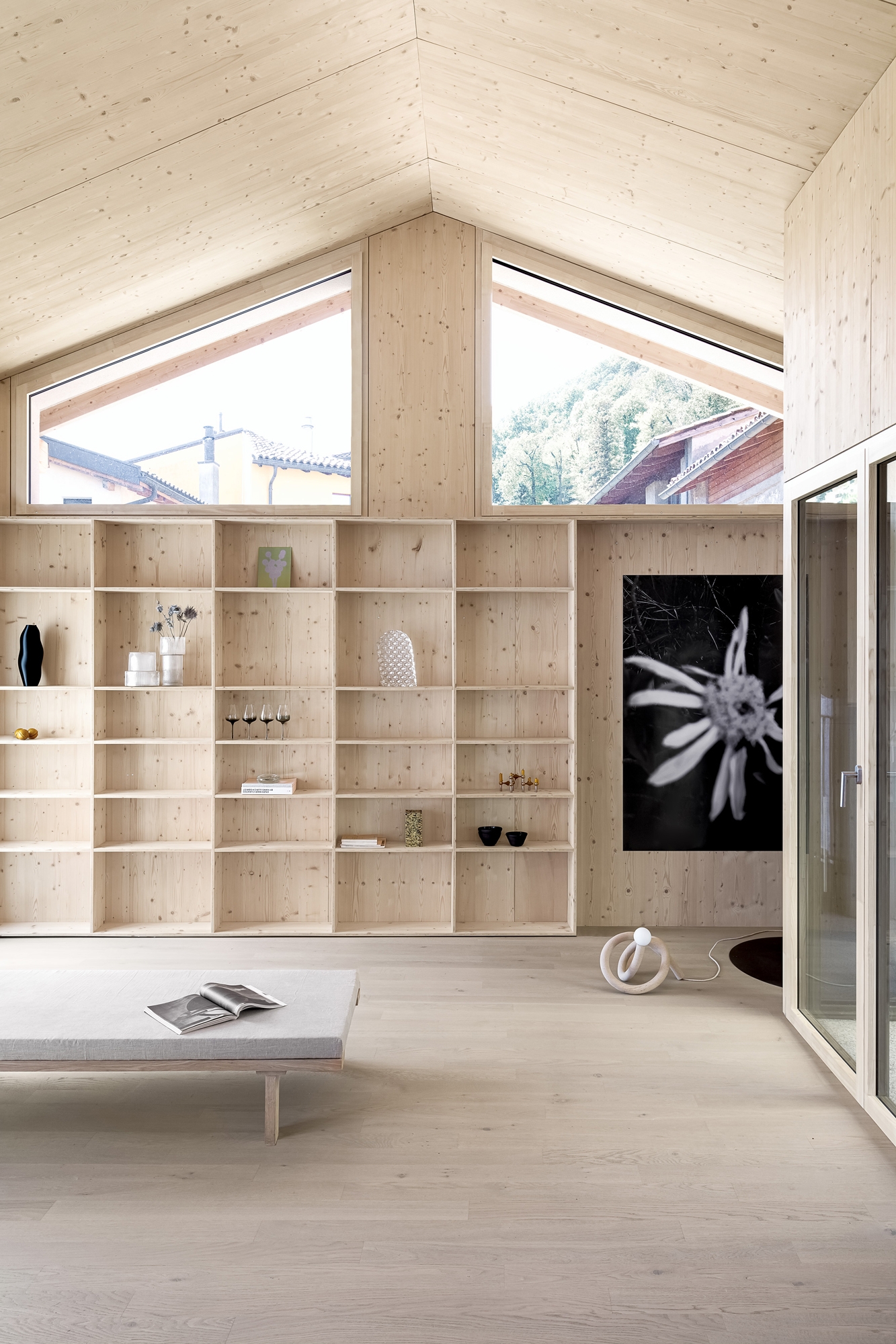 Fabio Compagno not only made the rustico liveable, but also made sure it complied with up-to-date energy standards. The interior, fully designed with wood, caters to the general well-being of its residents and meets the requirements of significant aspects for healthy living and sustainability. And the Cleverpark 1250 long-plank parquet by Bauwerk Parkett perfectly fits into the picture of this new sanctuary.