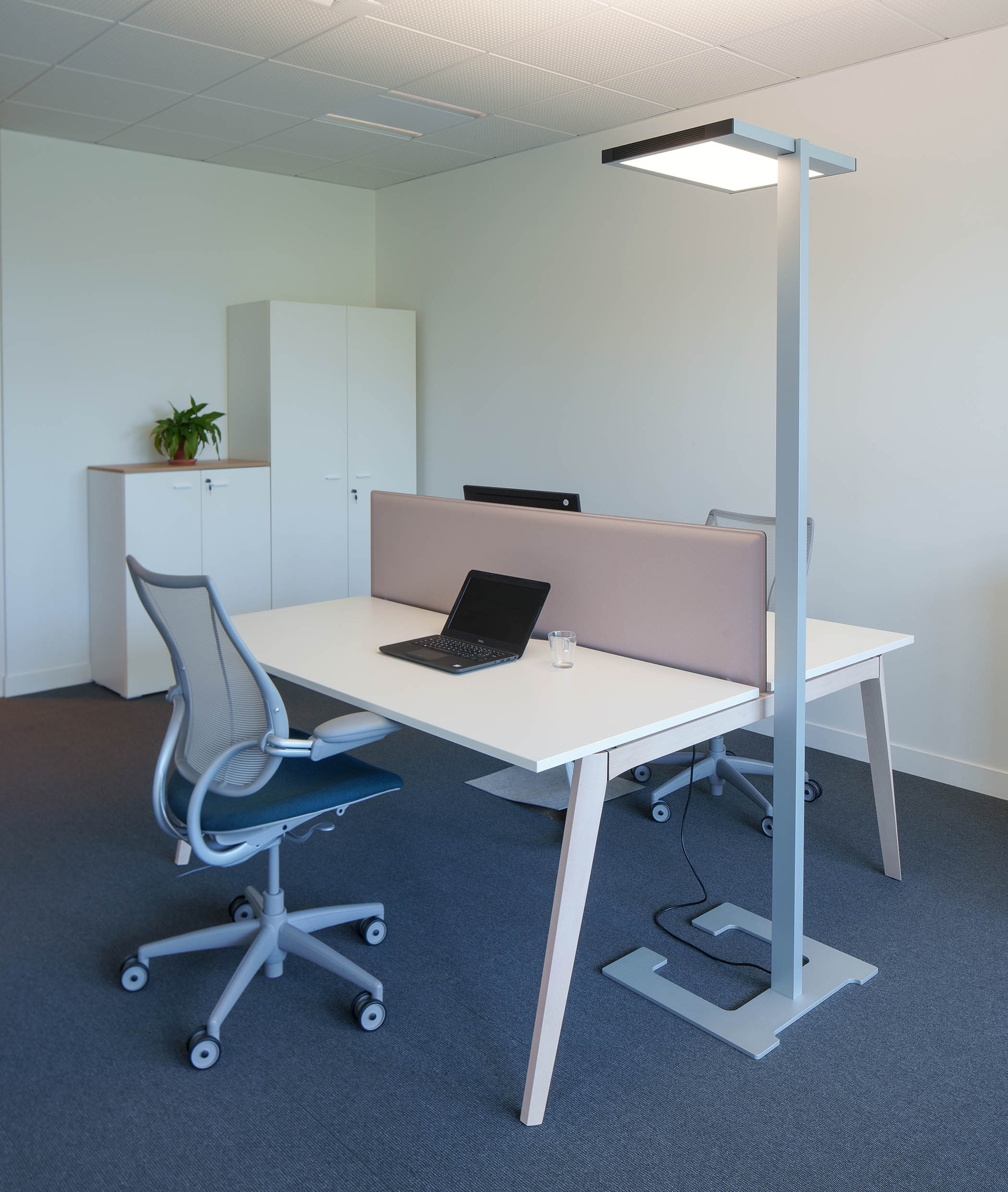 In 2018, the company moved into a new administrative building near Lyon. No ceiling lighting had been planned for the interior. The big challenge was therefore to find lighting which does not require additional light from the ceiling and which meets all the requirements for good and healthy room lighting.