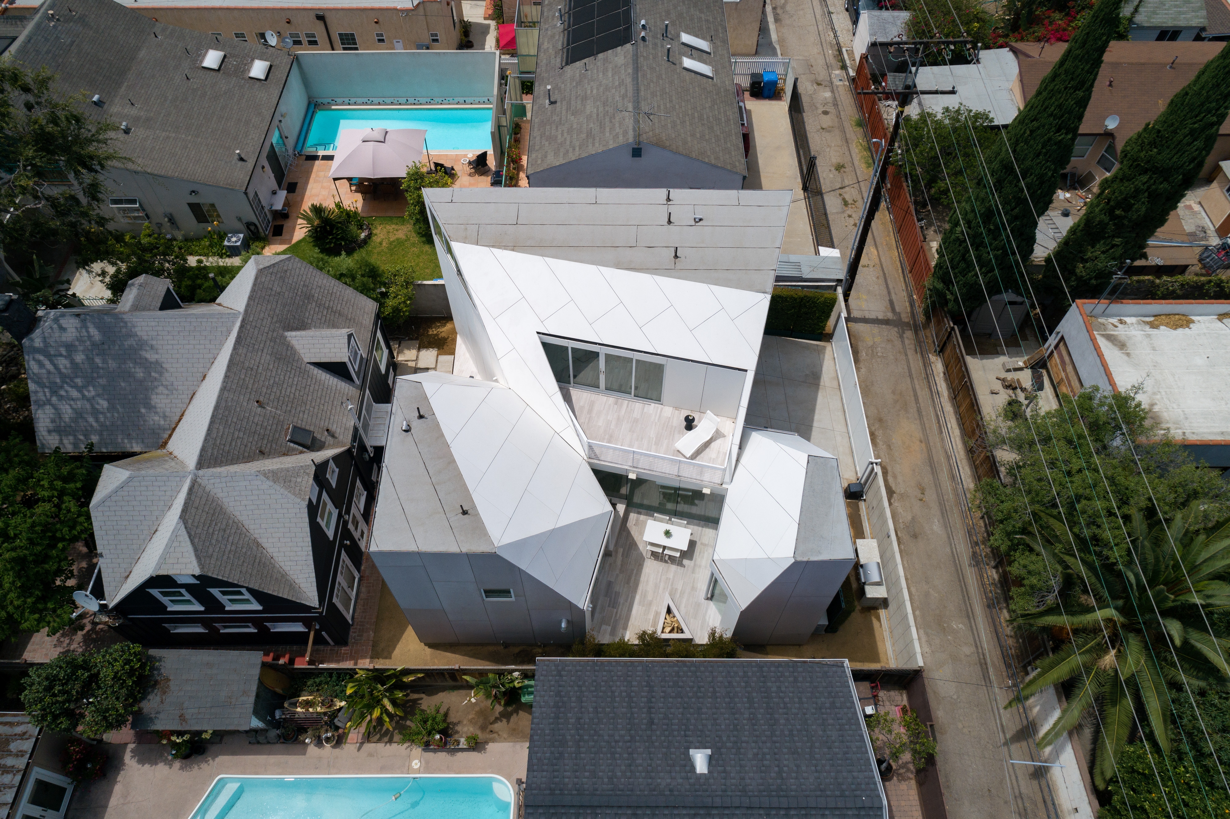 Los Angeles and New York based architecture office FreelandBuck recently completed a new residential project, Second House, in Culver City, Los Angeles. The new 1,500squarefoot home is an intricate aggregation of interior and exterior volumes. Located on a tight site behind an existing residence, the new structure borrows the steeply pitched rooflines of the front house while turning inward around a private, central courtyard.