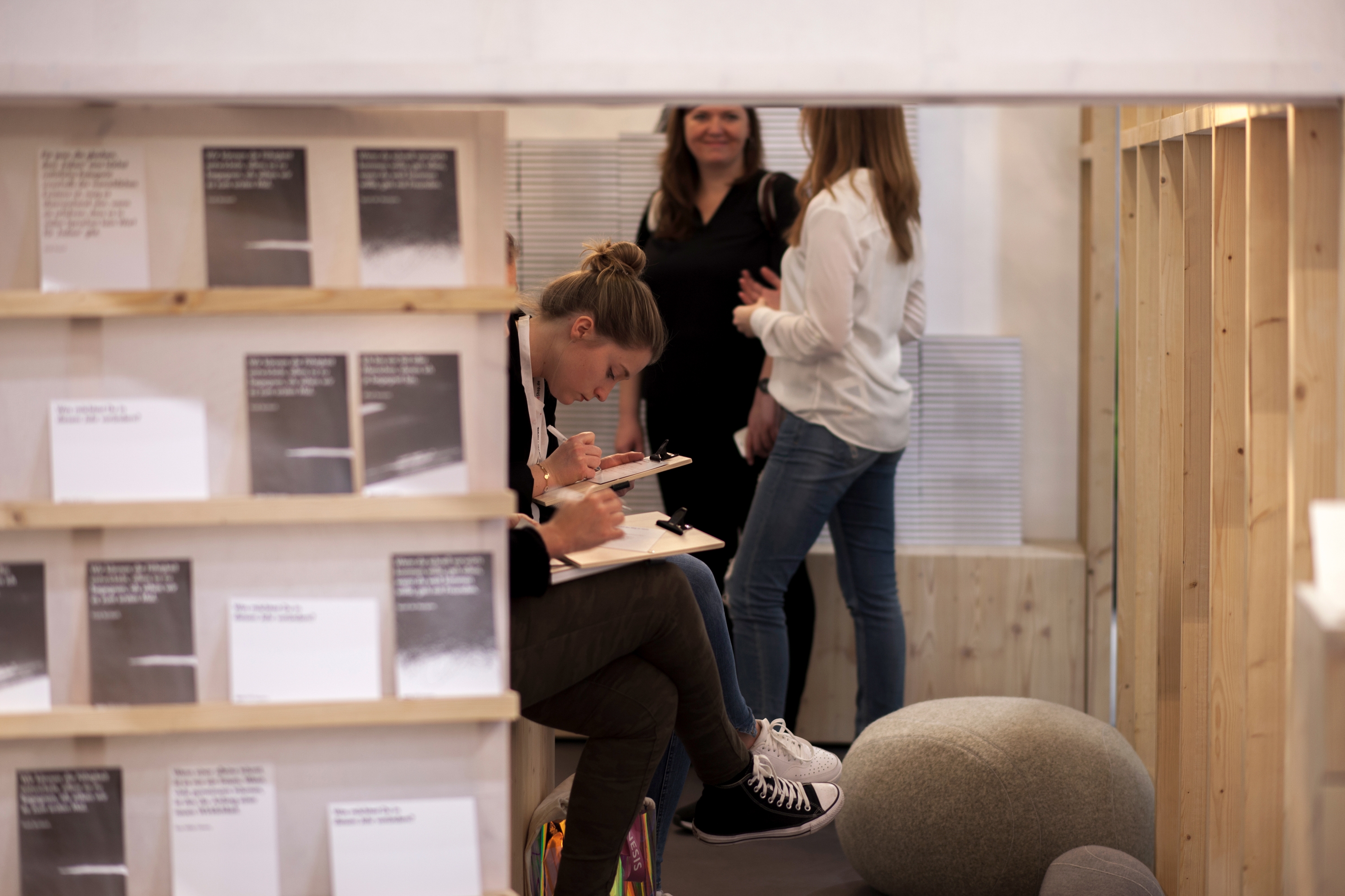 This ended for the visitor with a book that ppm handed over as a thank-you for the time spent together; a book full of new perspectives for a world based on encounter and relationship. A world in which people are turned towards each other and together create more than the sum of its parts would suggest. By giving the books away, a spatial graphic was revealed over the time of the trade fair, an original hand drawing that characterises the back wall of the interior. It symbolises the aesthetics of change.