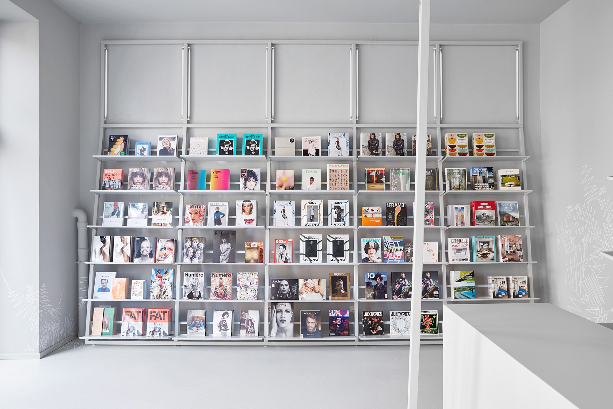 The interior by Designliga thus creates a stage for Sebastian Steinacker’s main players – his carefully curated range of magazines and books.