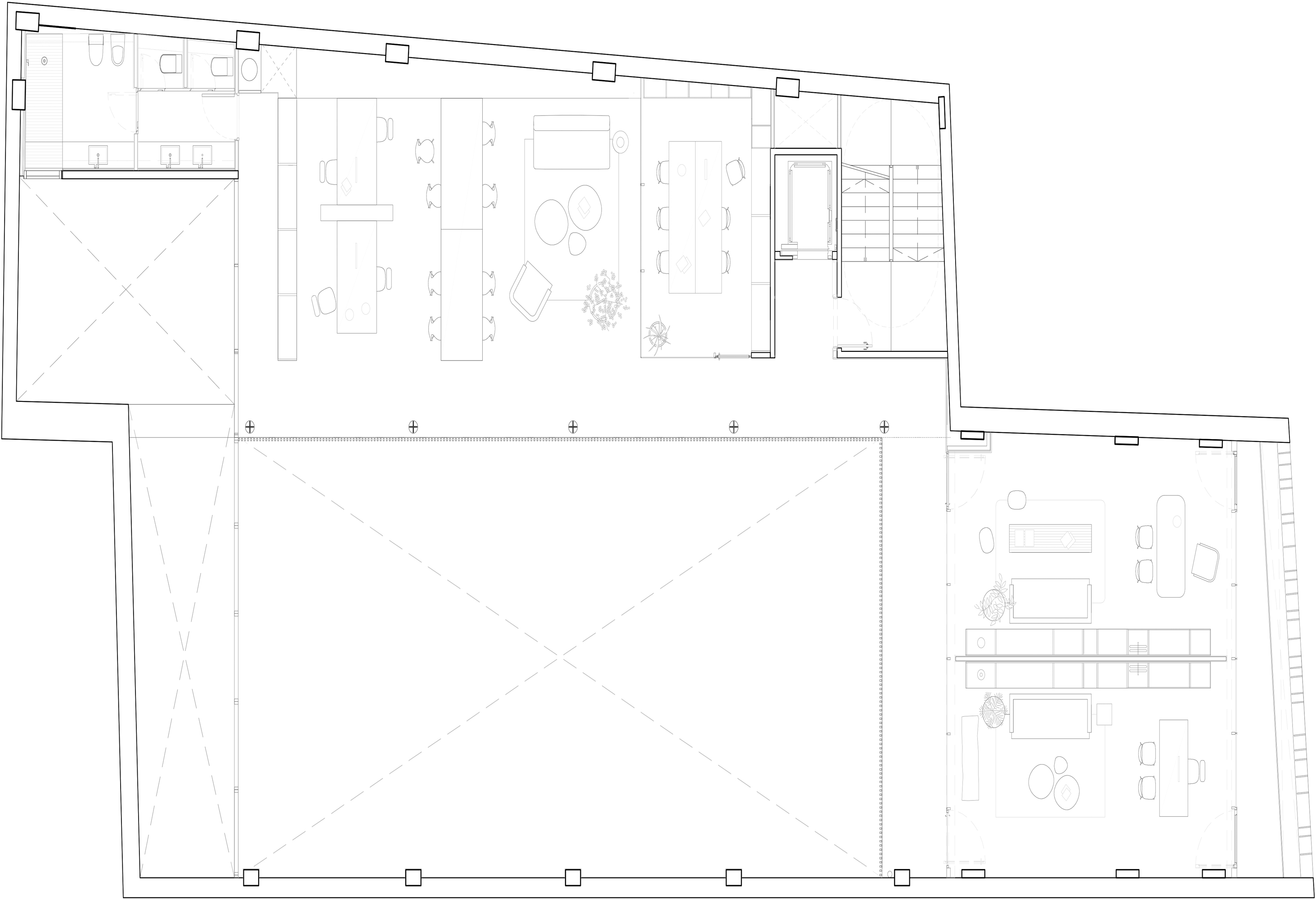 One of the main project design themes was the construction of emptiness as a resource to integrate people and work teams.
