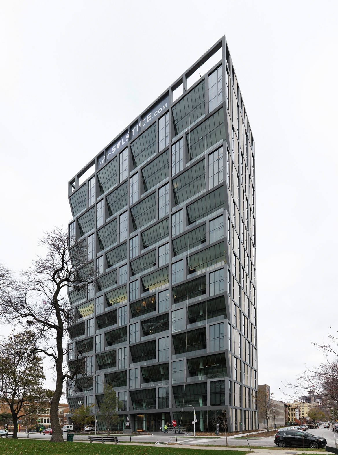 Solstice on the Park is a 26-storey, 250-apartment residential tower block with angles that perfectly catch the sunlight. The sunlight and the production of solar energy are maximised in the winter and reduced in the summer. This means that on hot days the air-conditioning system can be turned down. The building affords stunning views of Chicago’s skyline.