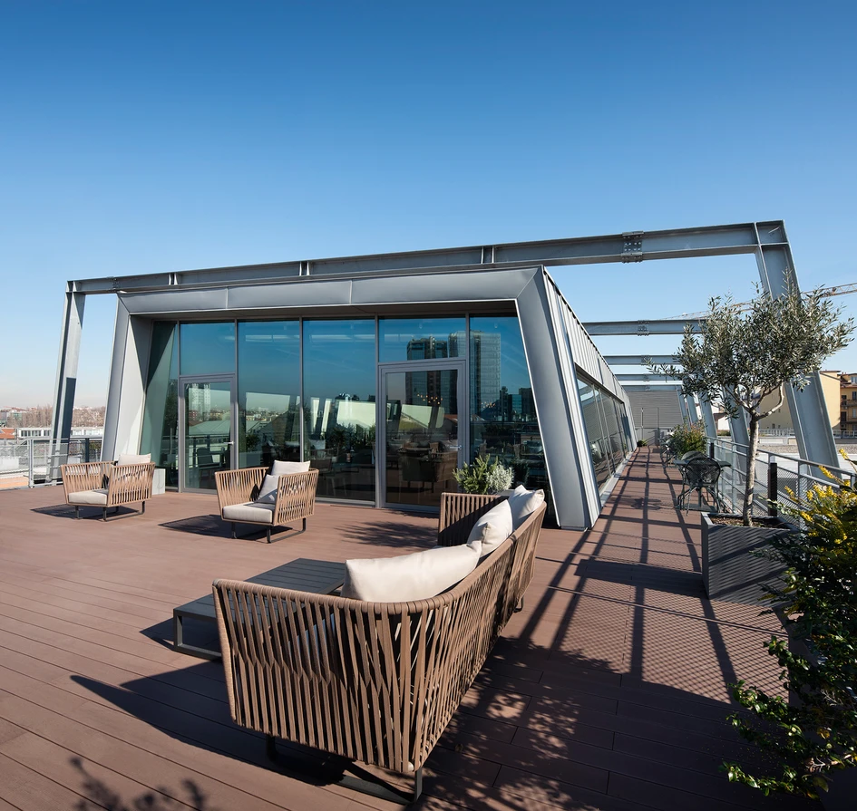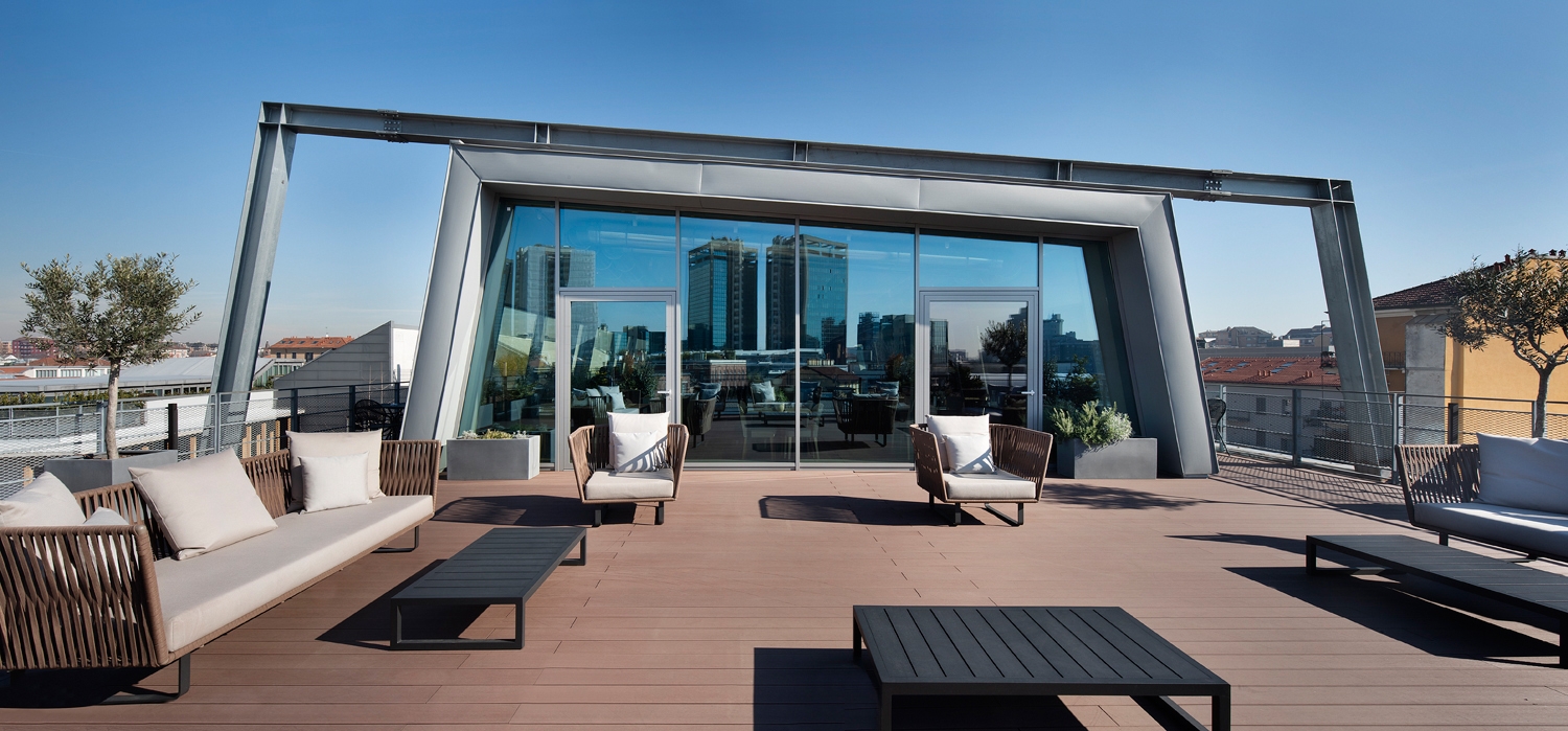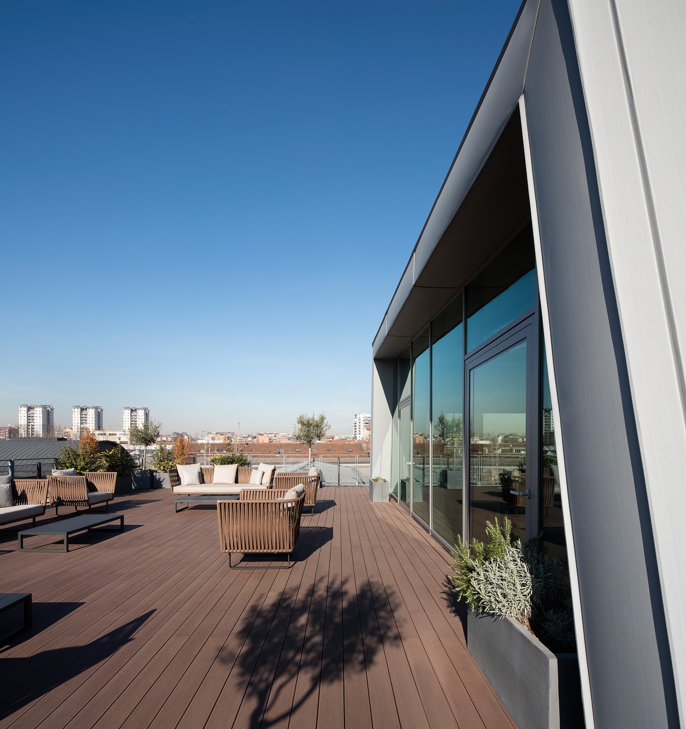 The Sopralzo (or topmost element) is part of the work done at Morimondo 23 and, constructed on the top floor where there is an unobstructed view of the city, it was designed to take advantage of the area and maximize the space.