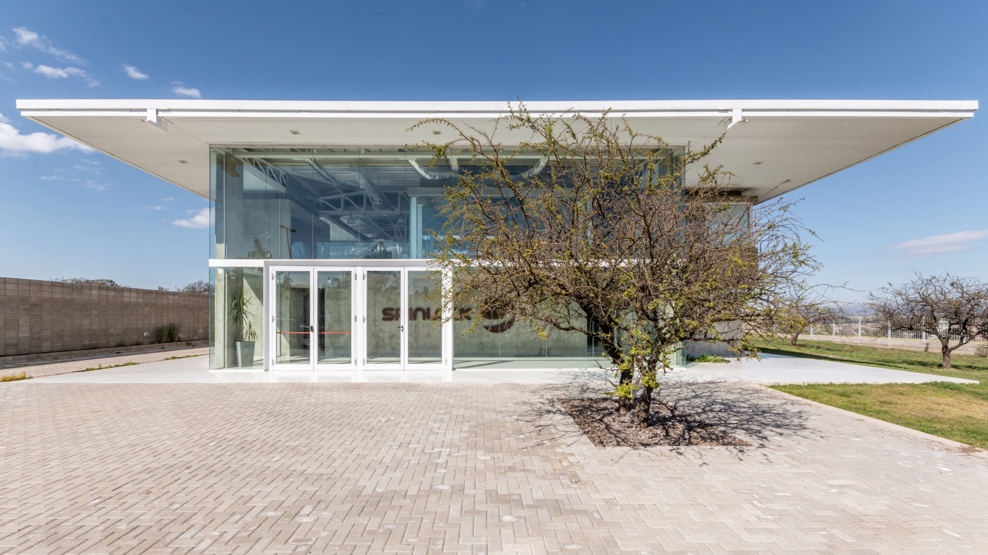 La gravidez de las cajas de hormigón no solamente contiene el espacio interior, también sirven de apoyo para la gran cubierta metálica de contextura ligera. La cubierta simplemente se apoya sobre las cajas de hormigón, acentuando su levedad con los voladizos en todo su perímetro para otorgarle sombra a todo el edificio. Sus tajos superiores rinden homenaje a las sierras cordobesas y buscan luz cenital hacia el sur para no generar deslumbramiento. El edificio busca reflejar la identidad de la empresa a través de un lenguaje sofisticado, utilizando tecnologías locales, se buscó simpleza y austeridad.