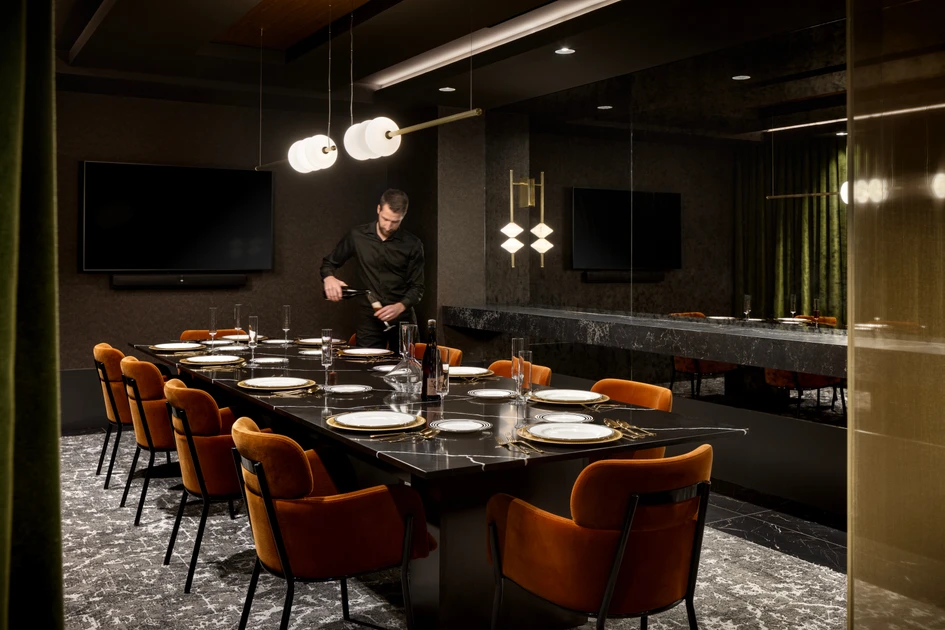 The 40,000-square-foot workplace enhances the employee and client experience through a variety of multifunctional spaces, along with the addition of an internal staircase. The interior features a rich, timber-heavy, hospitality-inspired aesthetic, modernizing the previously dark and moody cherrywood walls and flooring modelled after the Ritz Carlton.