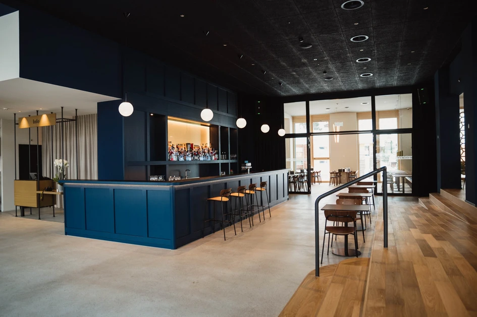 The aim of our interior design is to create a lifestylish, urban and warm atmosphere that stands out from the usual pseudo-traditional clichés of mountain lodges.