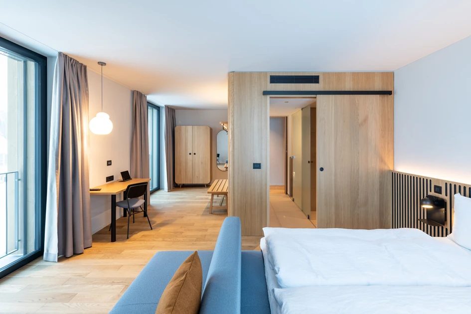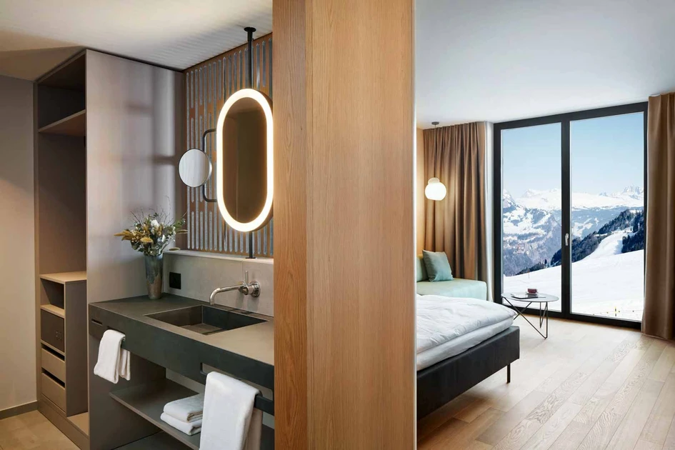 Traditional details, implemented in a modern way, refer to the mountain world and history of Stoos: