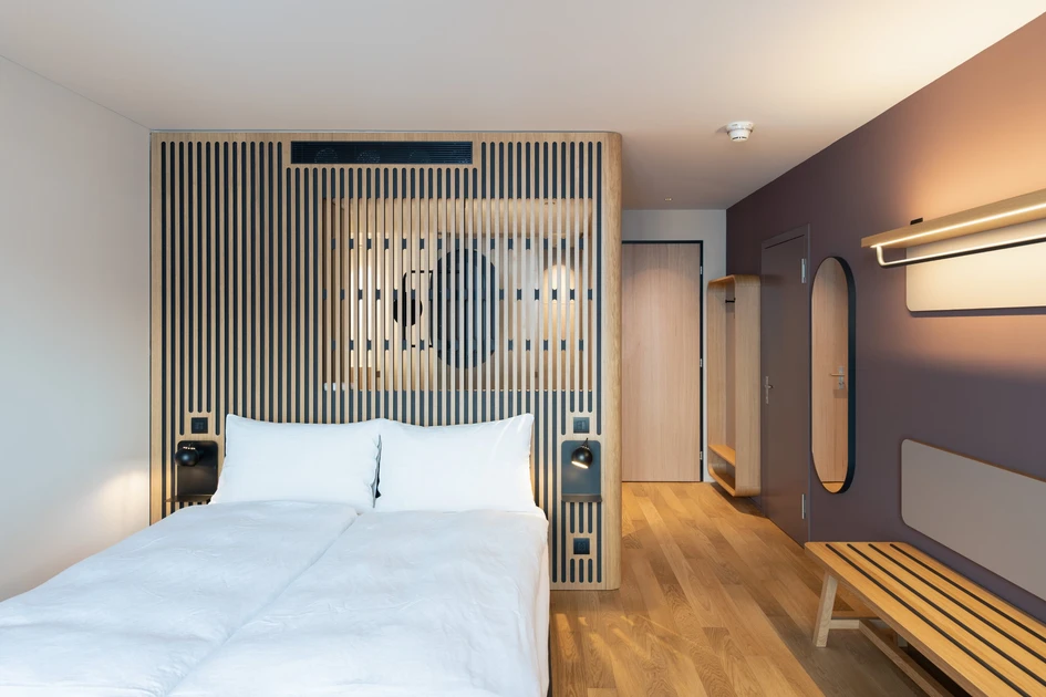 The new Stoos Lodge building (G&A Architekten AG, Altdorf) with 101 rooms and suites and generous catering, children's play, daycare, gym and seminar room areas stands at the terminus of the Stoos funicular.