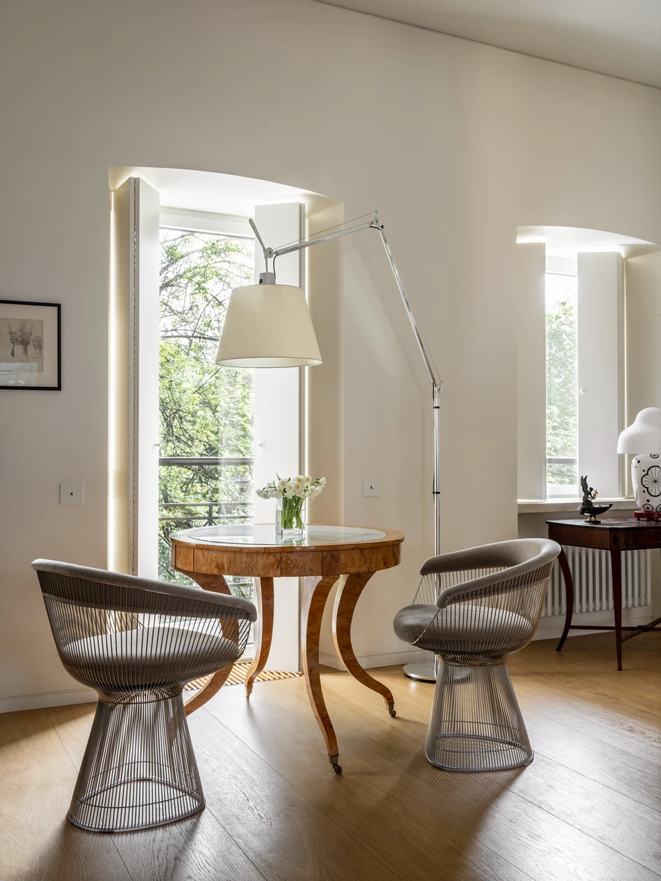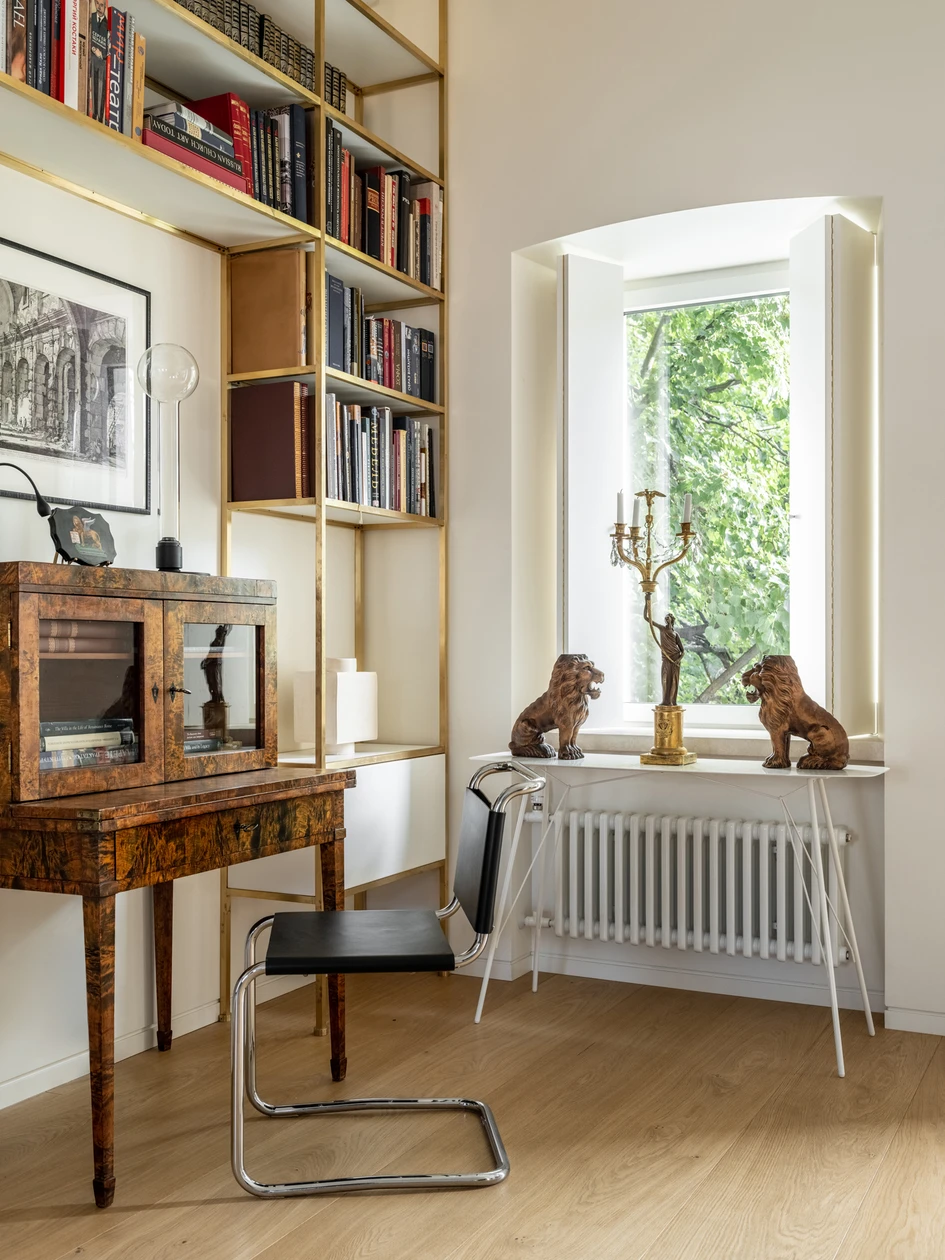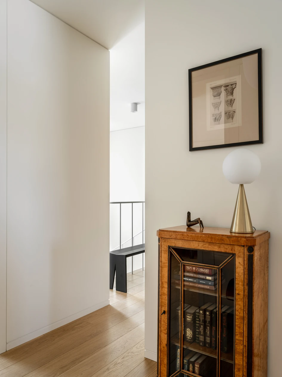 This project revolved around the apartment owners’ wish to integrate antique furniture in a modern setting while avoiding an atmosphere of a museum. Antiques carry the magic of craftsmanship and, when incorporated in an interior, they continue to give off their warmth. The space created by the architects has given the selected antique pieces a new lease on life.