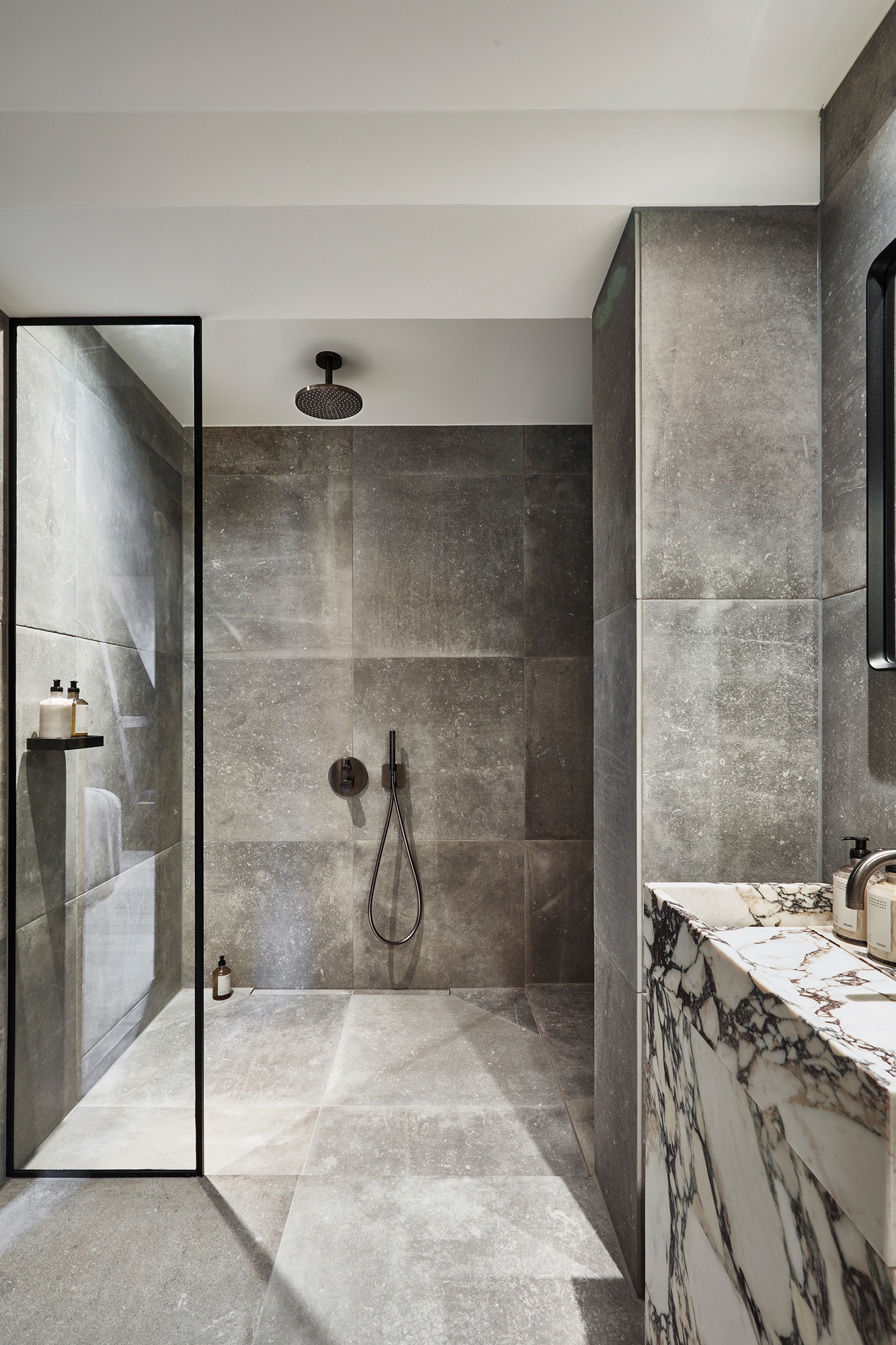 The Audo is equipped with our HighLine Custom solution in all hotel rooms. It provides an almost invisible drain that blends nicely into the large bathroom tiles.