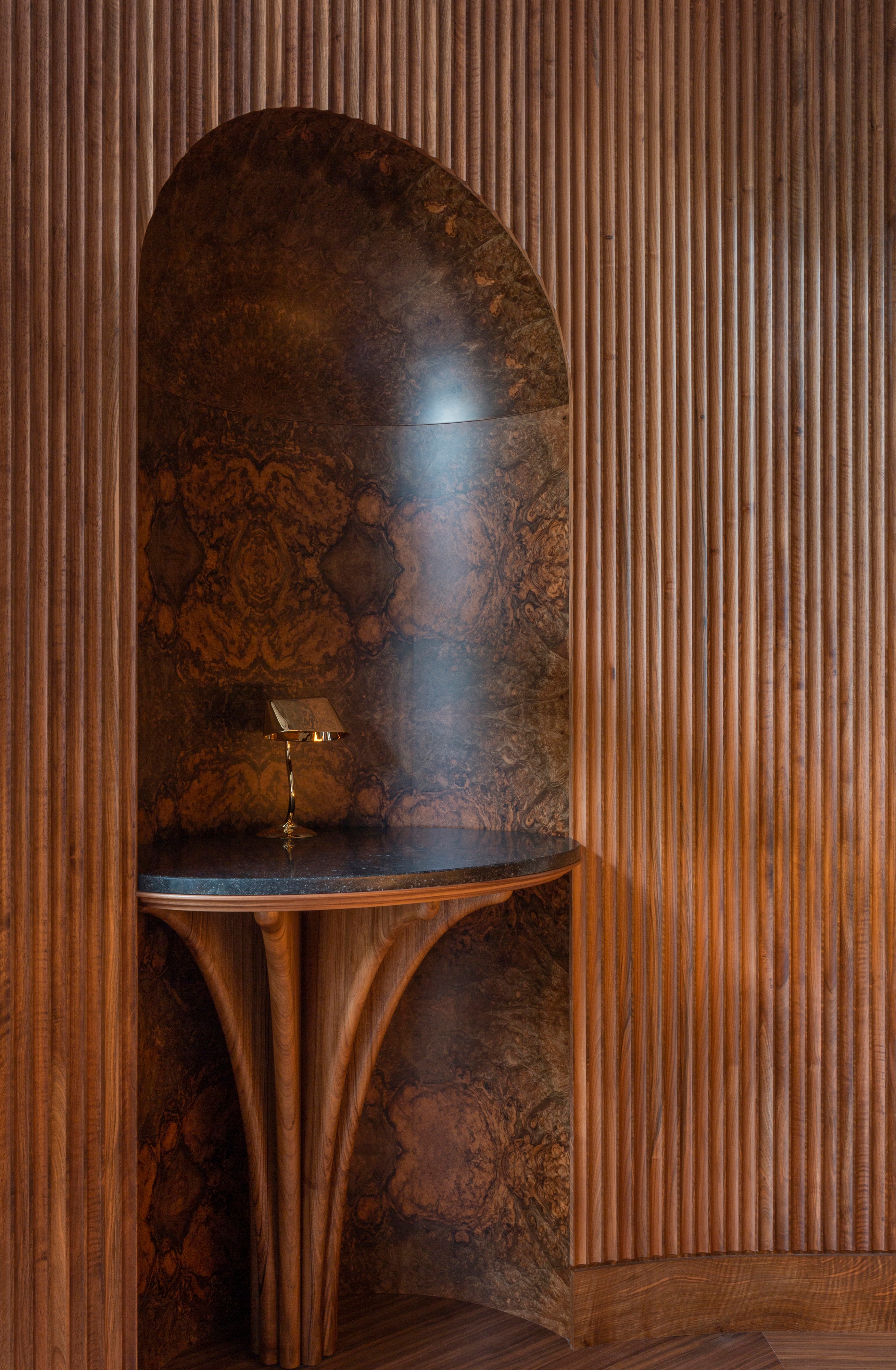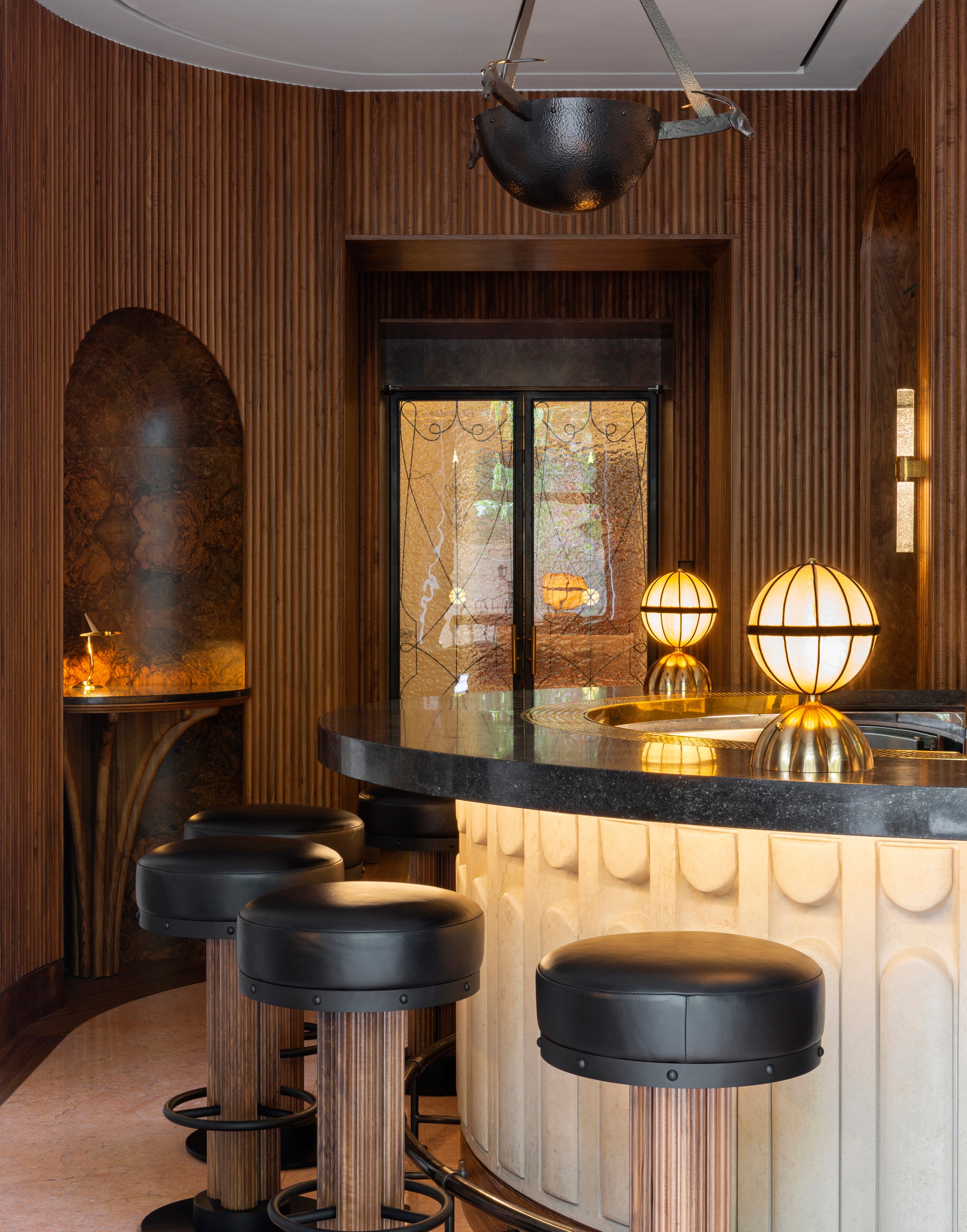 The Berkeley Bar is the Studio’s first hospitality project in London. Every element of The Berkeley Bar has been designed by Bryan O’Sullivan Studio and is realised by fine craftspeople, from the plasterwork frieze, bespoke lighting, custom furniture to the unique totem pole.