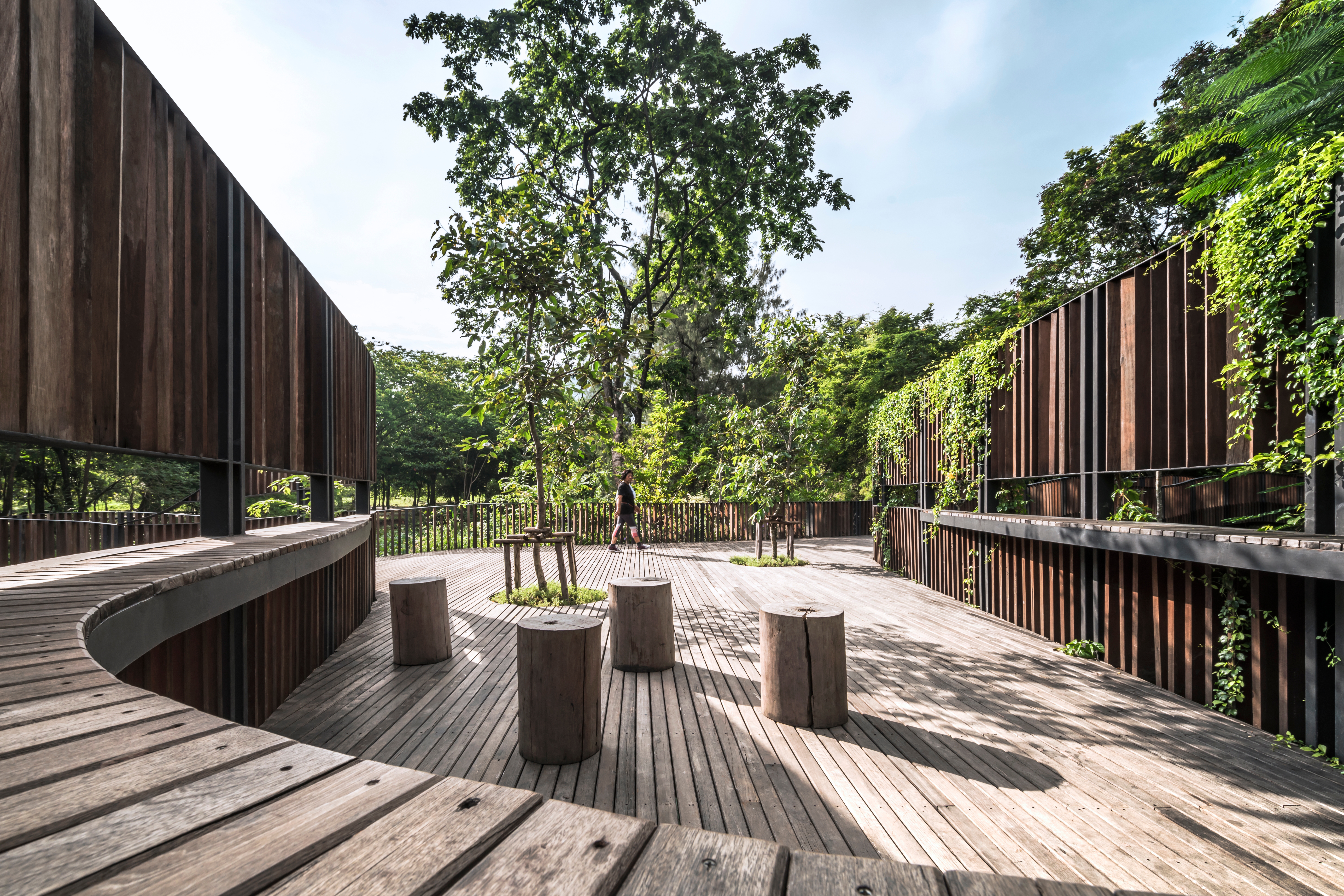 The landscape architect proposed this minimal intervention to the director board of H.M. Queen Sirikit Park in 2014 as a ‘trial’ connection to enable real use if the parks are to be combined. The name ‘Bird Wave’ tributes to its appearance as well as the surroundings in which it is situated, giving importance to the uses and function of the Bird Sanctuary and gently introducing the different kind of public green space where biodiversity can coexist with urban environment.