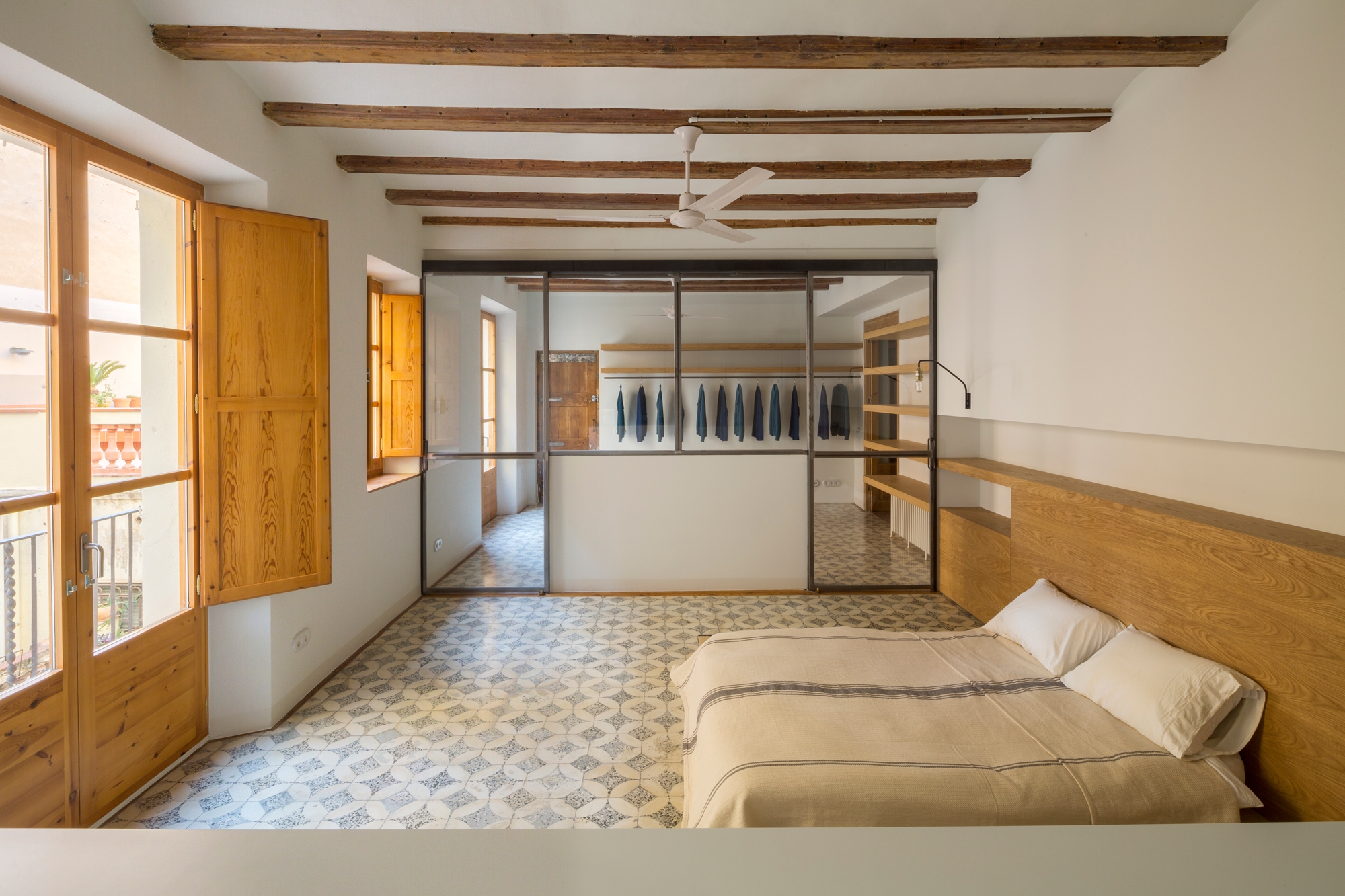 We set out the areas closest to the façade so that they could be separated when needed, while still letting light reach the rest of the building. The most private area next to the interior wall became a ‘flat within a flat’, complete with a master bedroom, fully equipped bathroom, dressing room and office space. It is also possible to split the space into two bedrooms, without jeopardizing accessibility from the master bedroom.