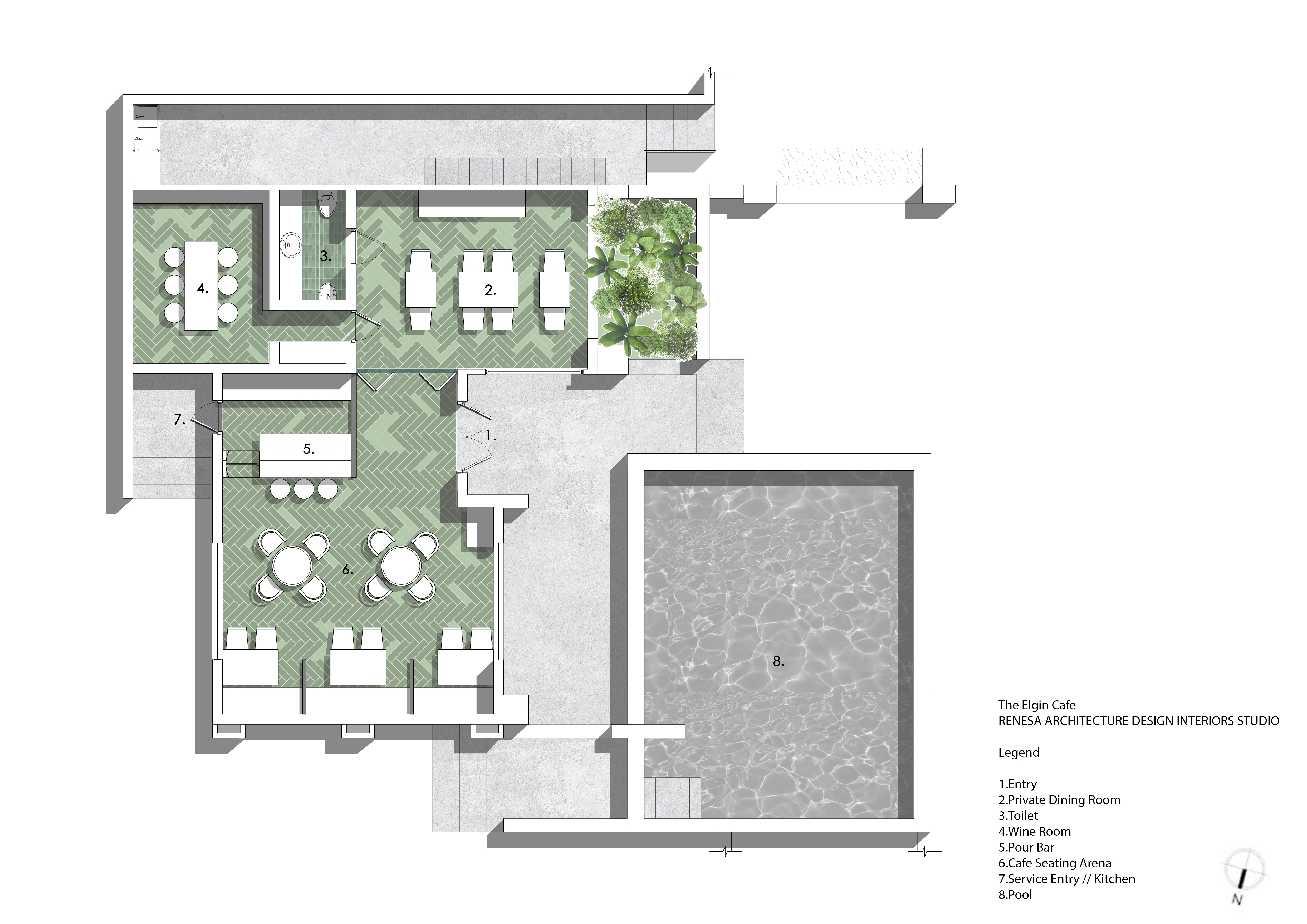 The latest product of RENESA ARCHITECTURE DESIGN INTERIORS STUDIO, The Elgin Cafe restaurant and bar is a culmination of a day bistro with a hip bar vibe by night. Leaning on our maximalist side, we created a clean, soft space with an inviting color palette. The idea was to create an atmosphere and feel of the outdoors, where you would find yourself surrounded by greenery, natural wood, food spots, and conversations. We sought to engage in a design that would create an international hospitality experience, consequently appealing to the social media savvy clientele that enjoys cafe culture.