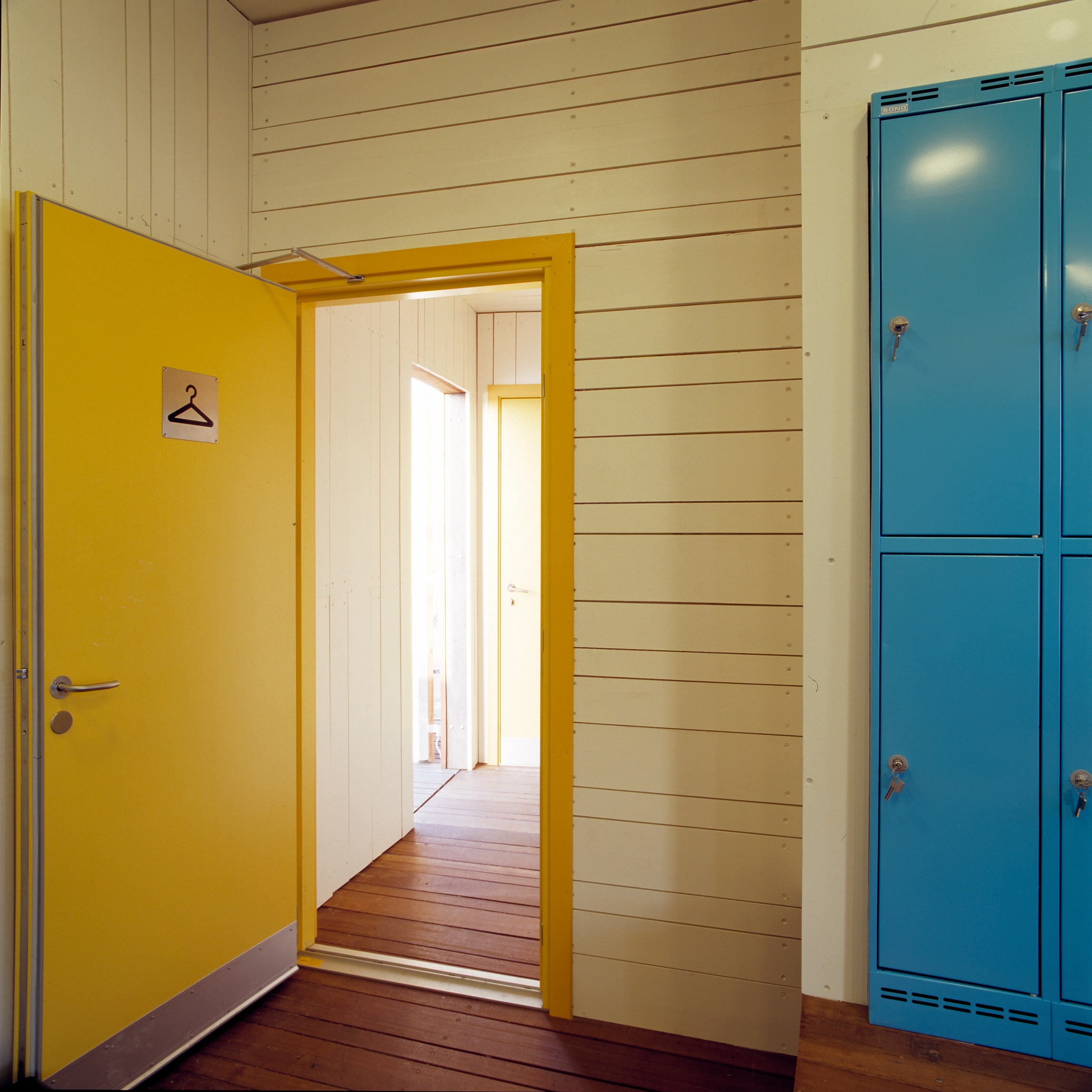 The aim was to use the shape to build in functions such as changing, sunbathing and bathing areas in a simple design that compares favourably with the wide expanse of the sea. A clear concept that is also faces the beach in a welcoming manner. This is nothing private or exclusive, rather a facility open to everyone, regardless of age, physical mobility or needs. Bathing is not compulsory, even thought it looks inviting.